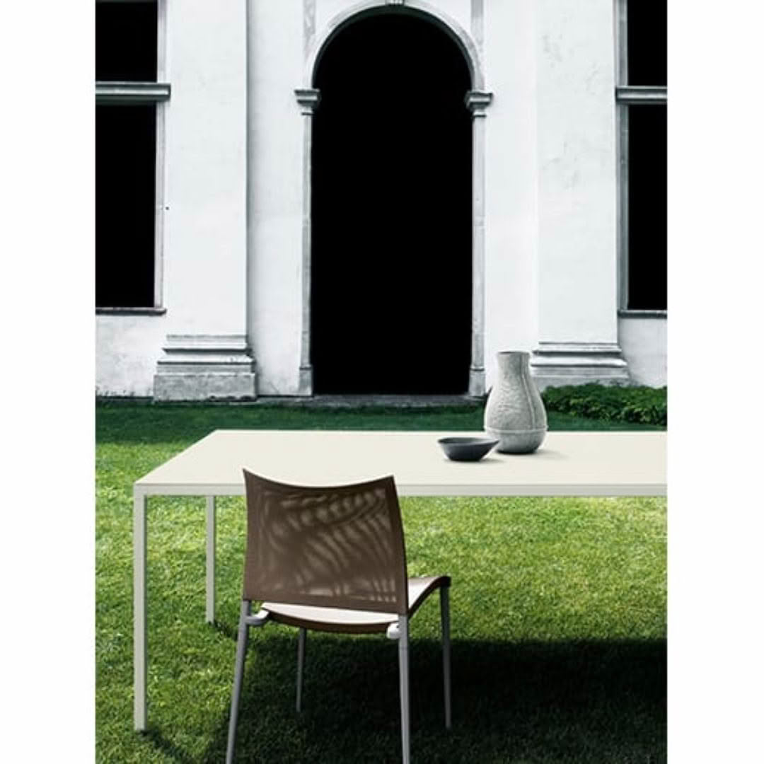 Rigorous and rational tables, for an exquisite elegant outdoor use, with the added value of ceramic tops.