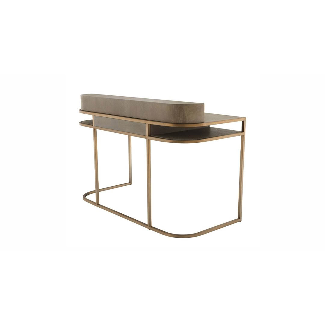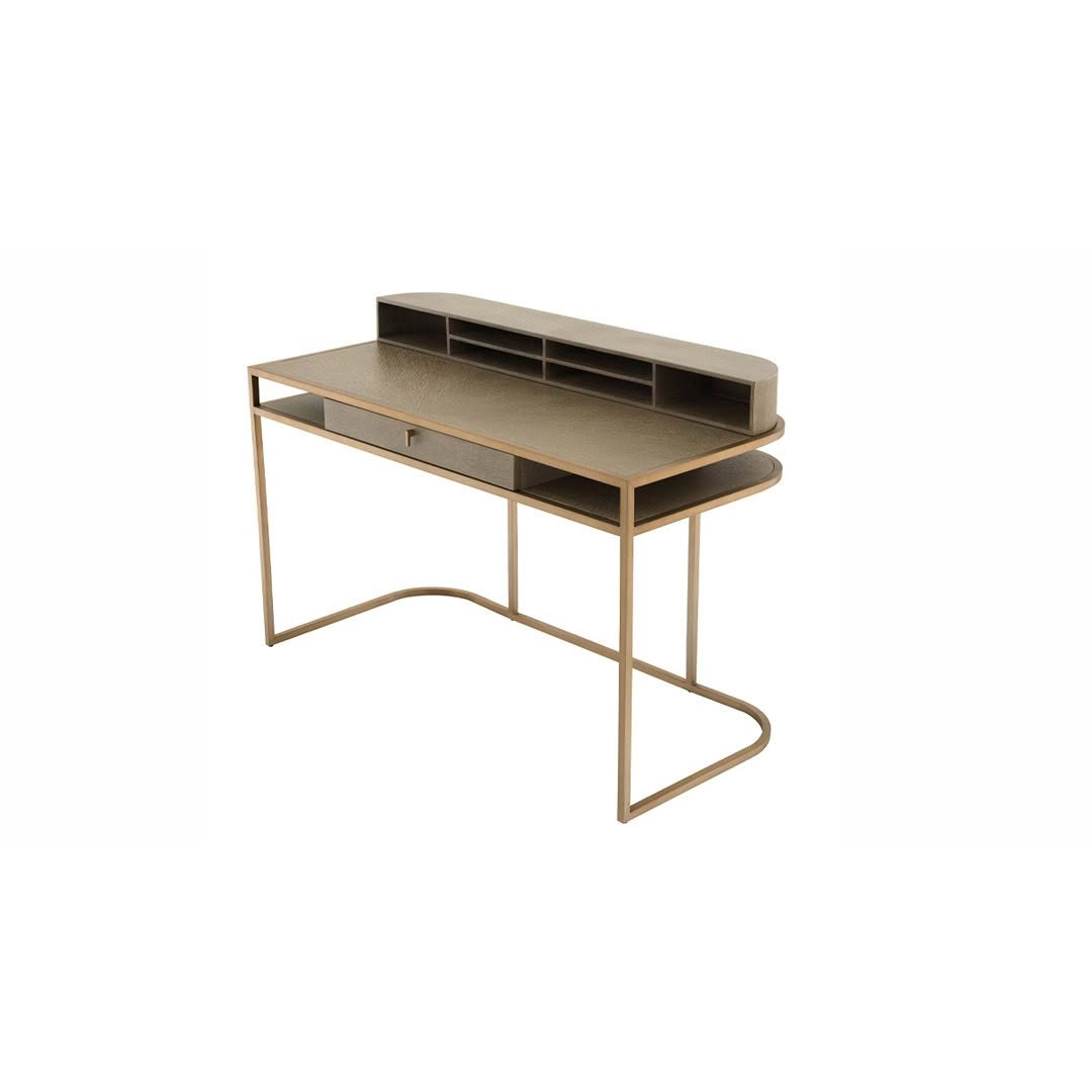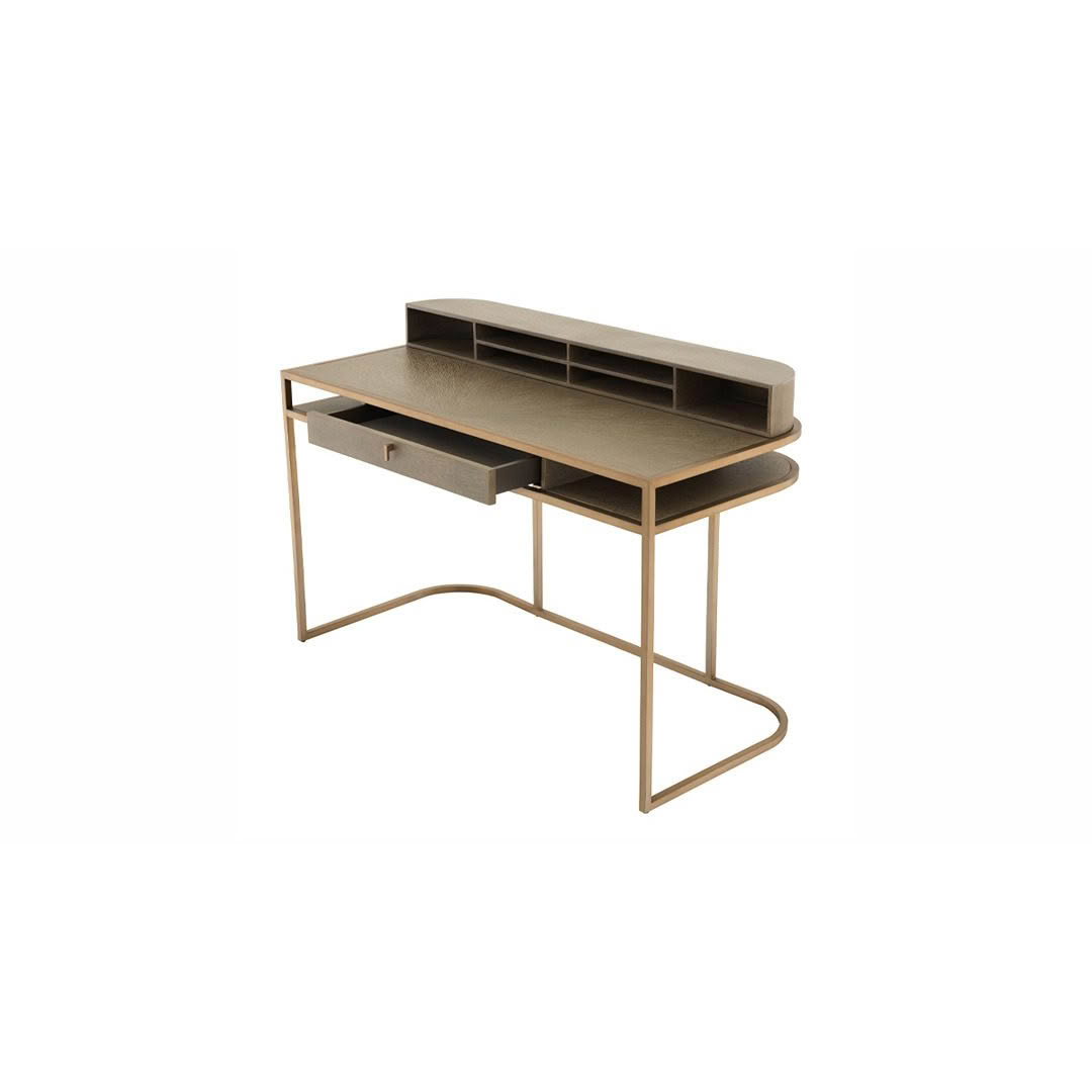 The washed oak veneer Highland Desk is a beautifully streamlined writing desk in retro design with drawer set on a metal frame with brushed brass finish.