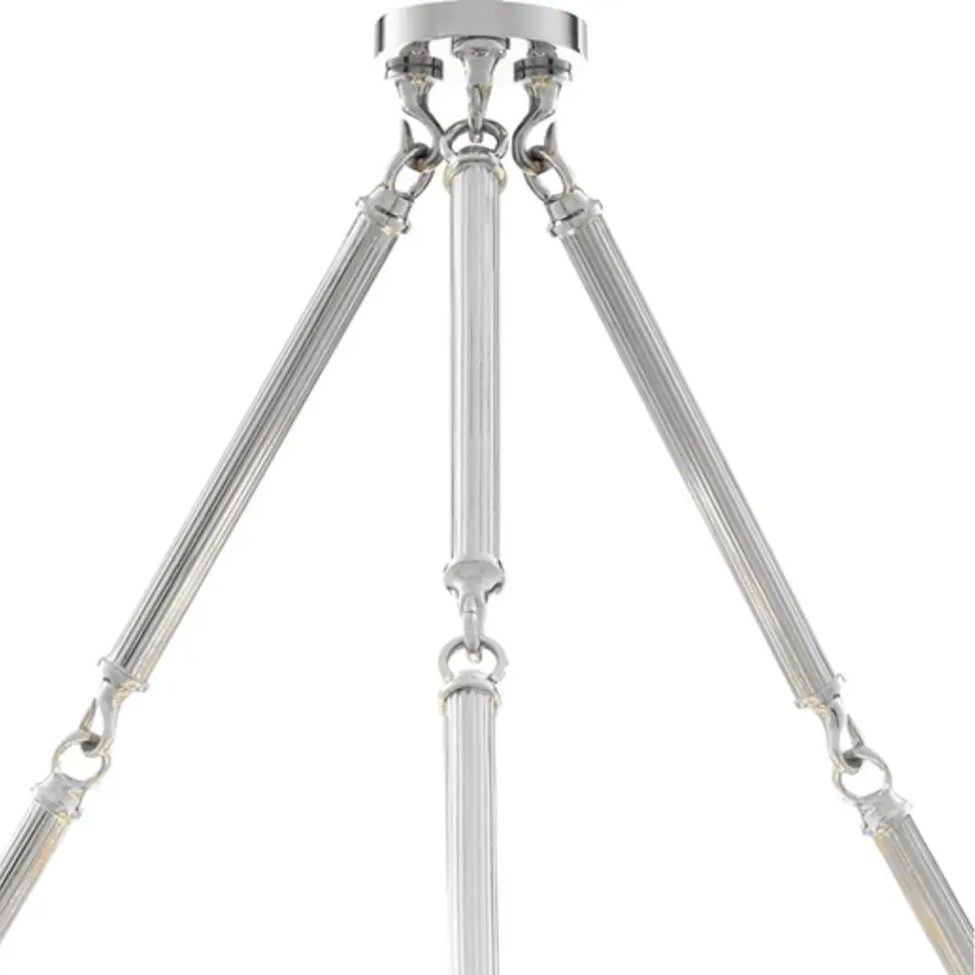 Create a fascinating focal point in your interior with the scintillating two tiered round Infinity Double Chandelier. This enchanting Art Deco drum ceiling pendant features a nickel finish suspension and decorative crystal glass rods. Each of the two tiers has its own bulbs.