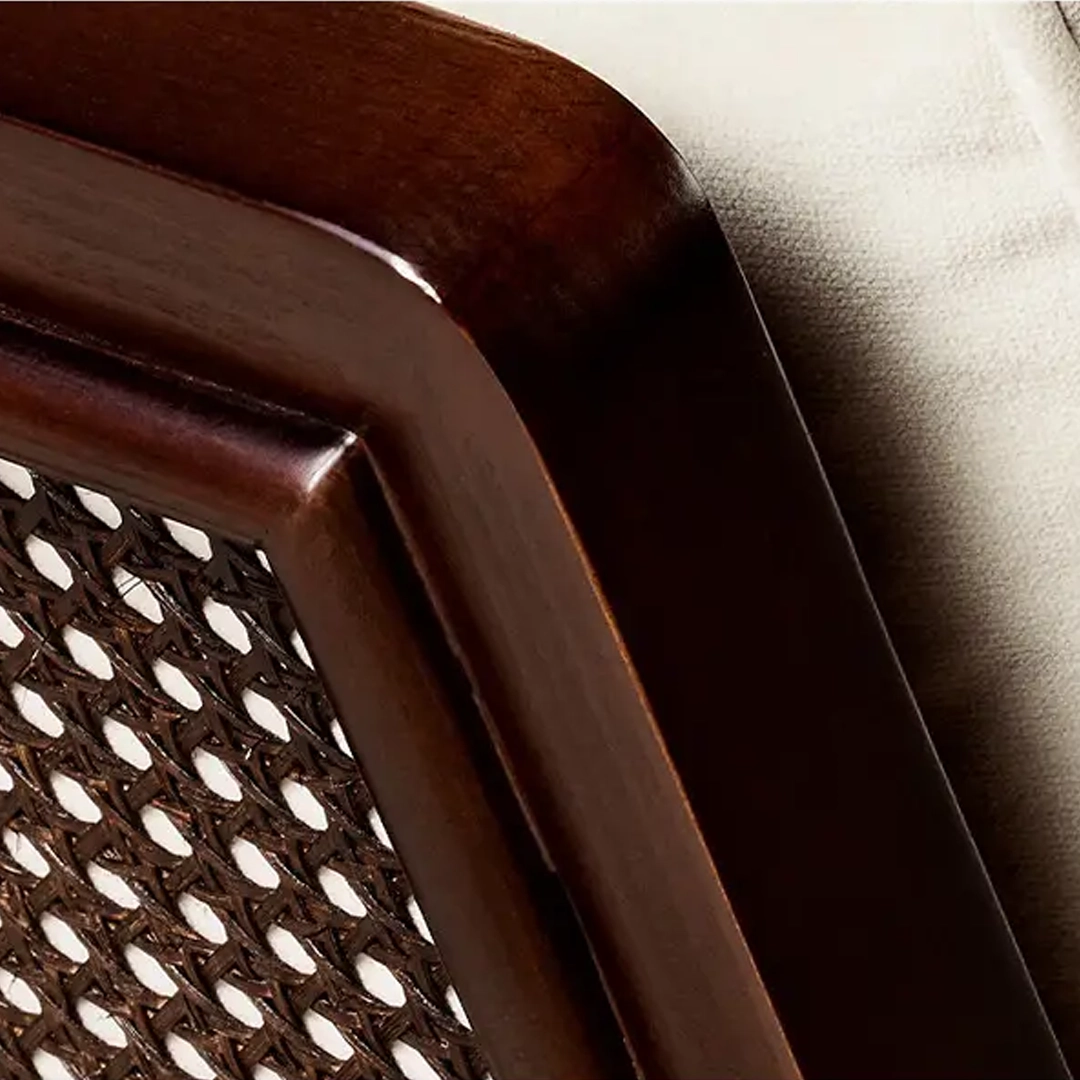 Showcasing elements of early 20th-century design, the Lounge Moderne chair features continuous, streamlined arms crafted from solid wood and accompanied by a woven cane seat and back rest. Offering a distinct recline, it’s paired with premium cushions for lasting comfort.