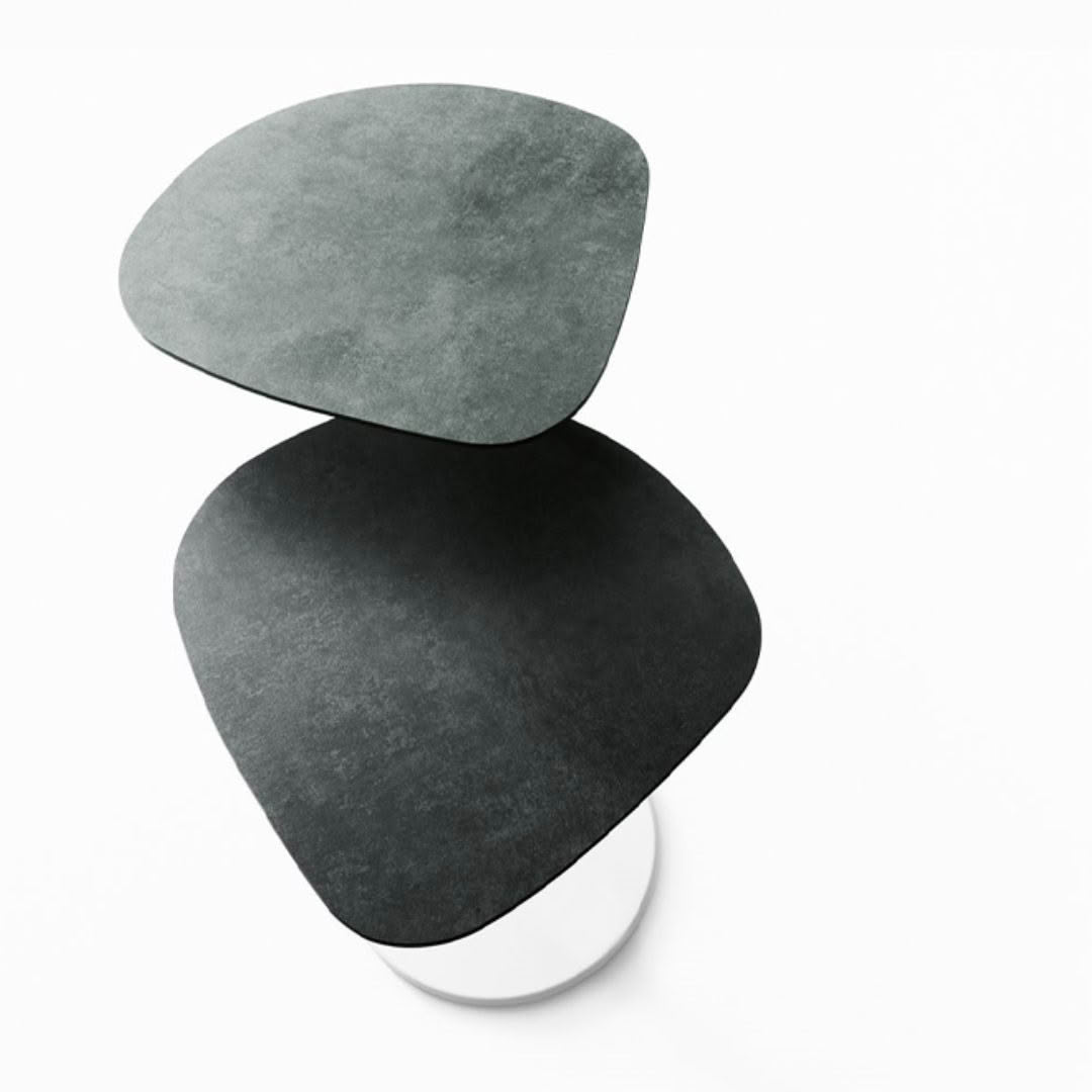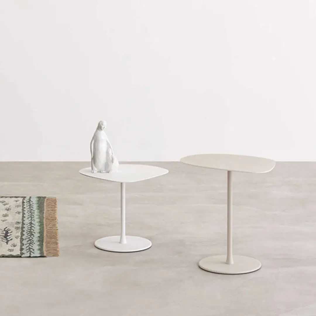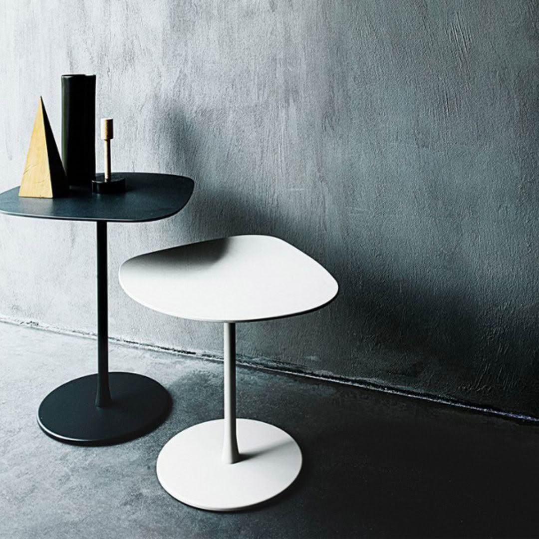 Low tables with simple, graceful shapes, with modern and original details enhanced by a powerful graphic presence and classic colours. Small table with layered or painted laminate top. Steel tube and base, painted in the same colour as the top. Available with ceramic tops mm 6 too, suitable also for Outdoor.