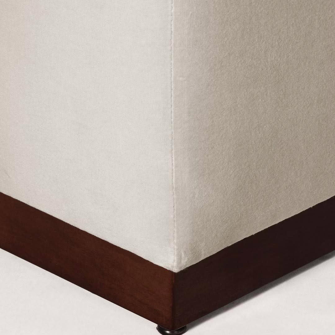 Sized to complement the sofa, this modern bench is hand-upholstered with ample padding and supported by a recessed plinth base crafted from solid maple wood.