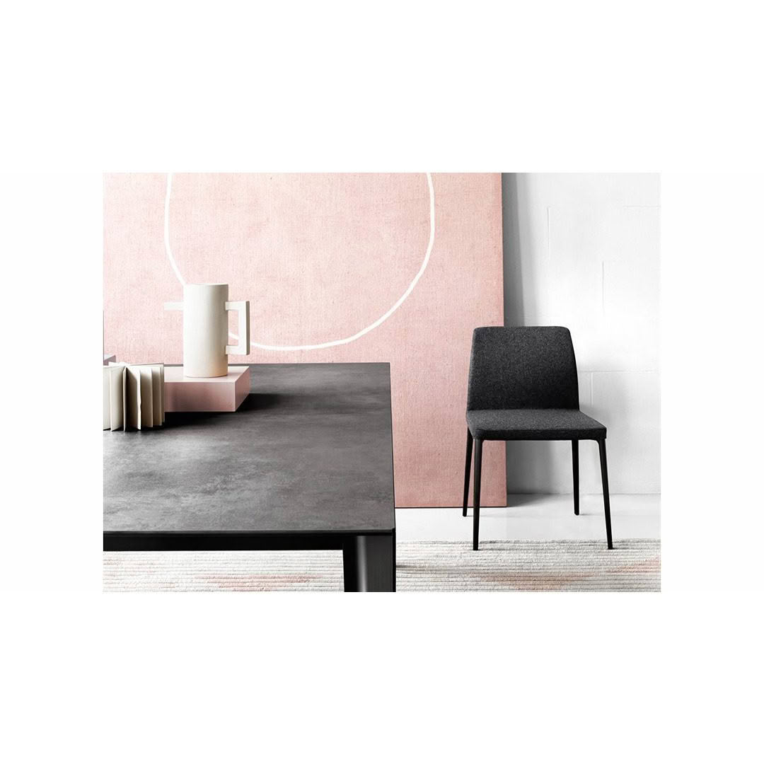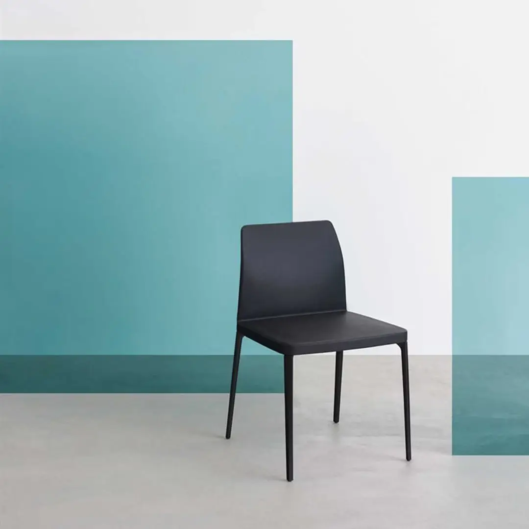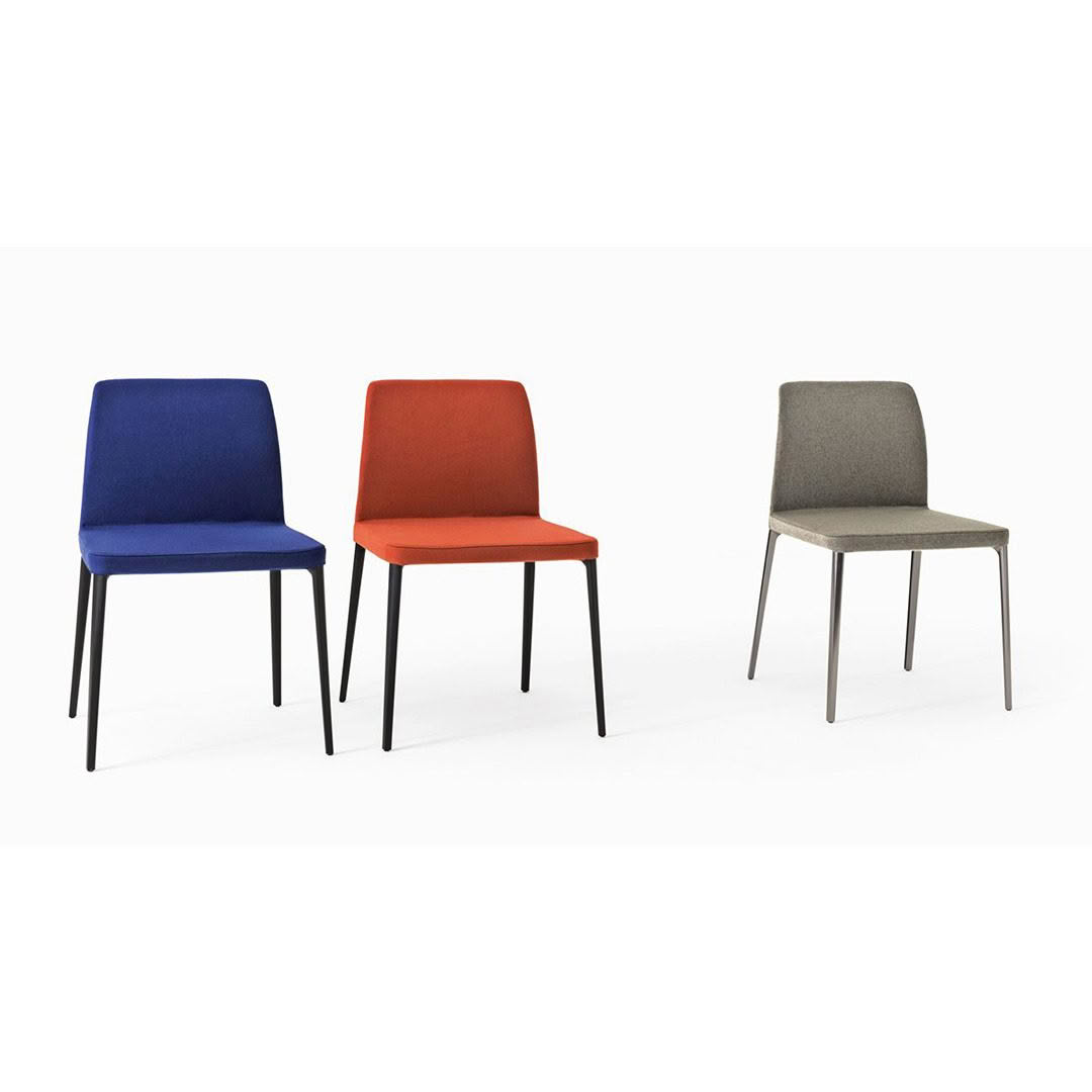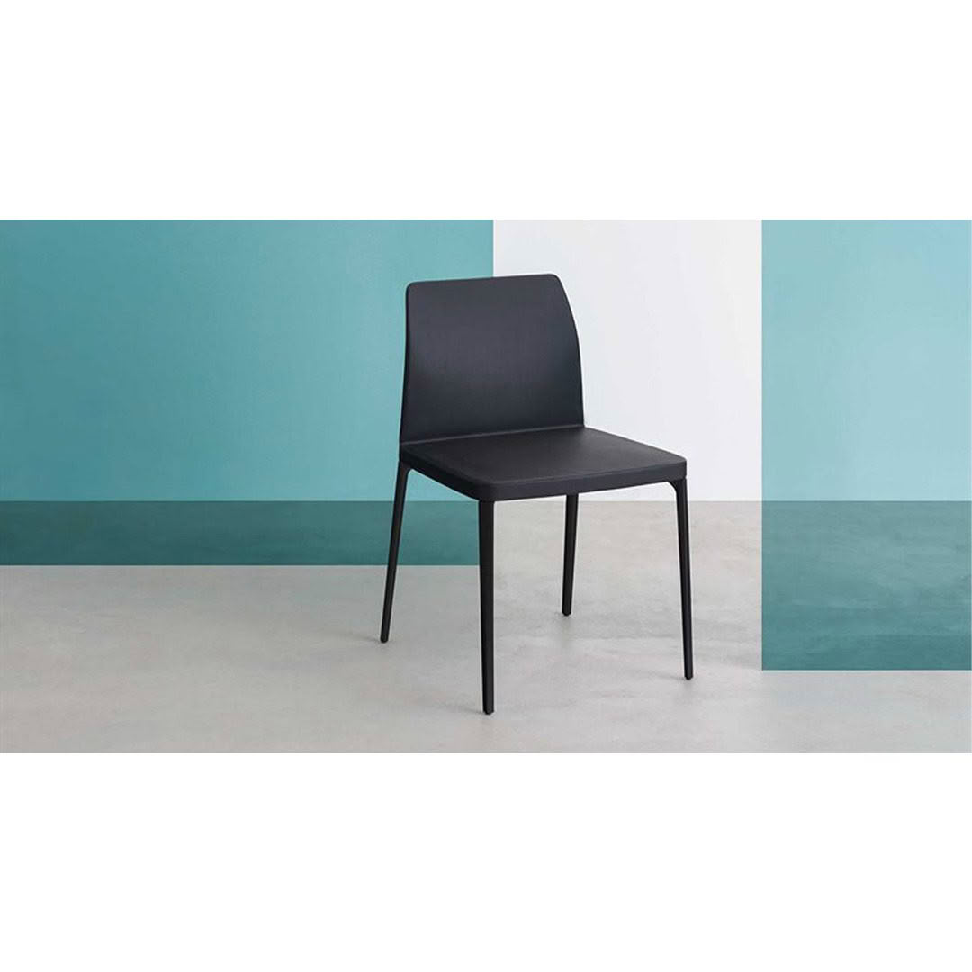 Upholstered chair with removable fabric, leather or eco-leather. Seat and back in flexible polyurethane with seat elastic belt. Die-cast aluminium legs.