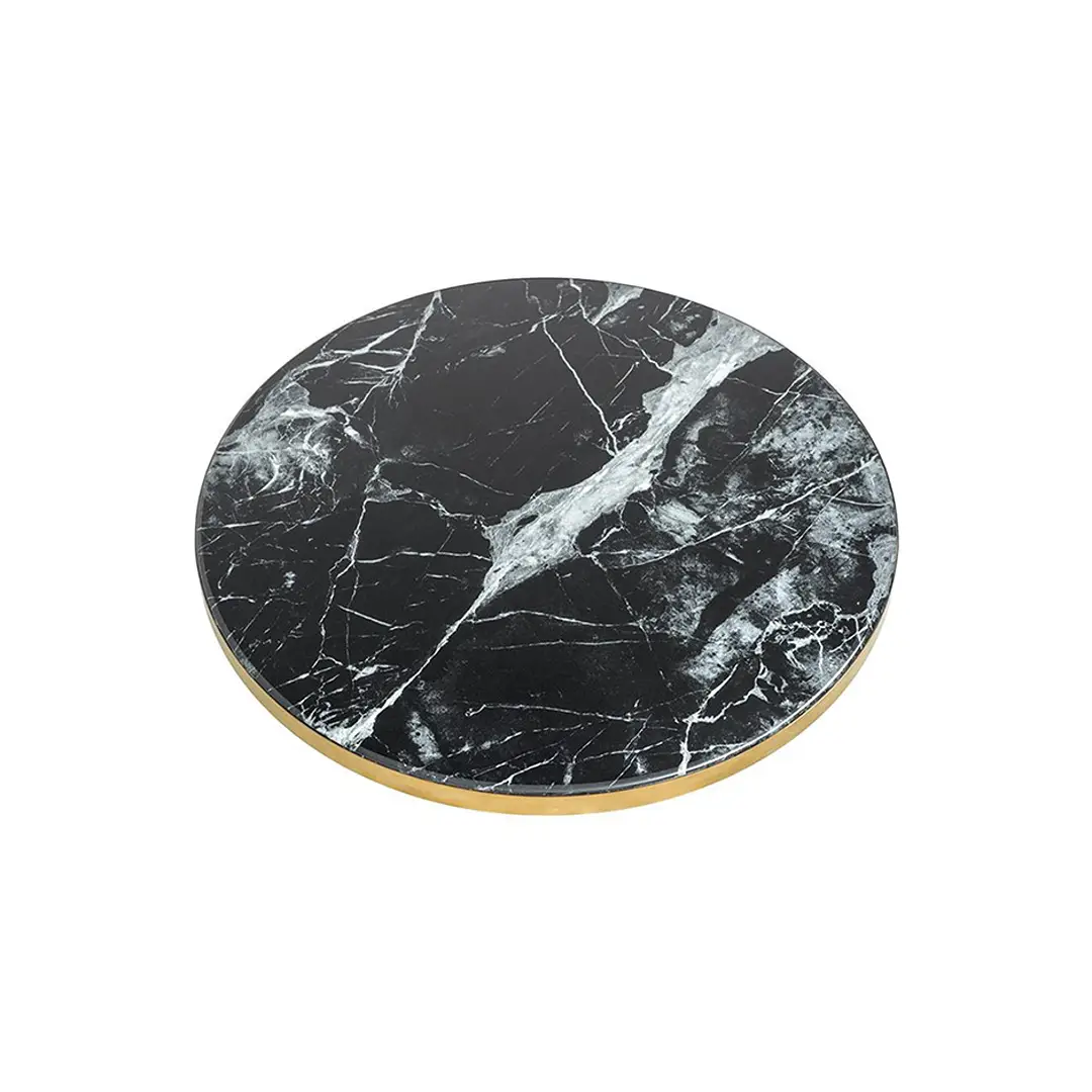 Black finish with black faux marble and brushed brass rim