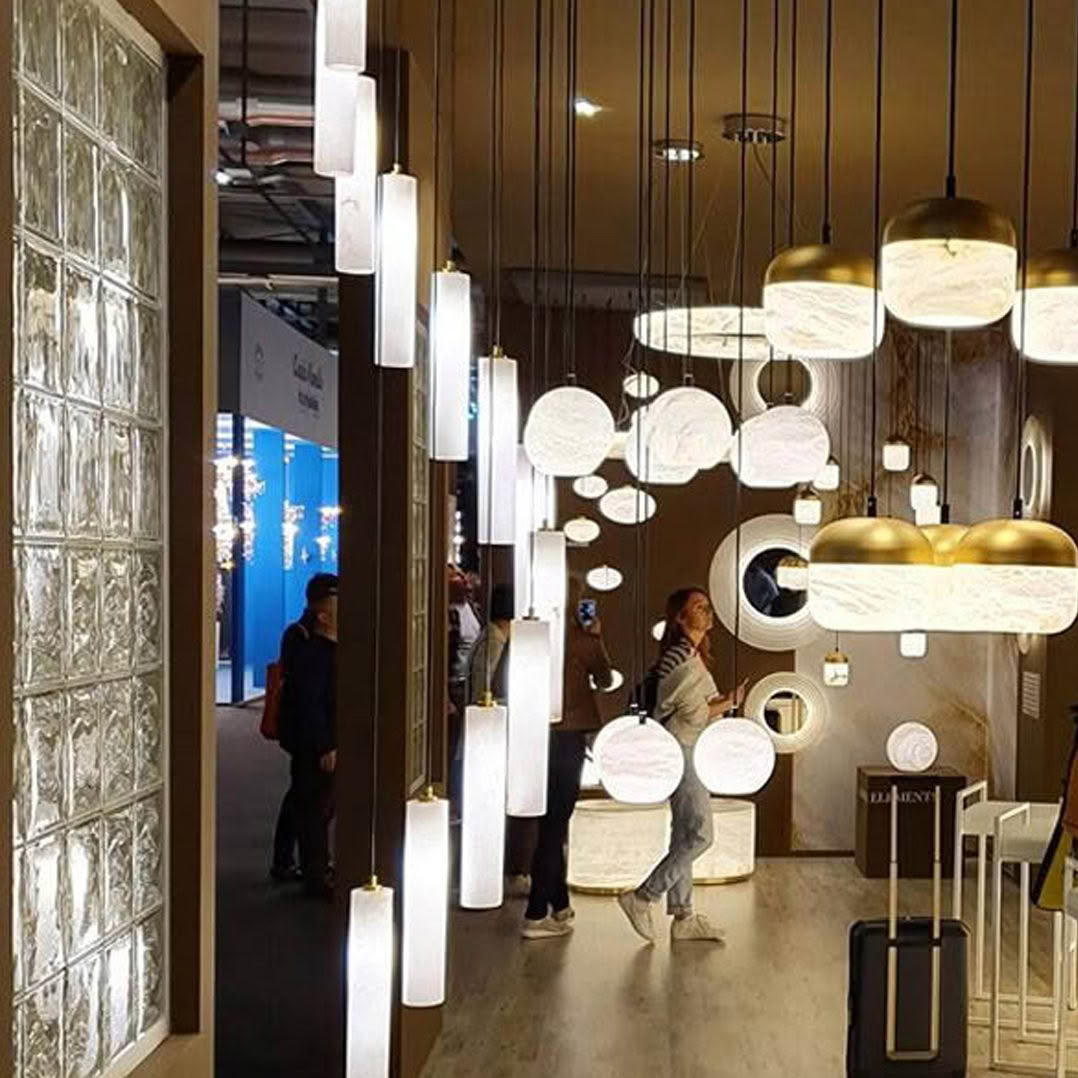 Brass top combined with alabaster. The result is a family of luminaires, adaptable in any contemporary space. Natural stone with contemporary elements.
