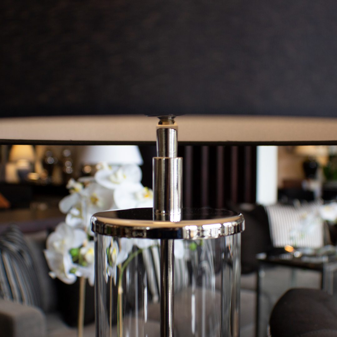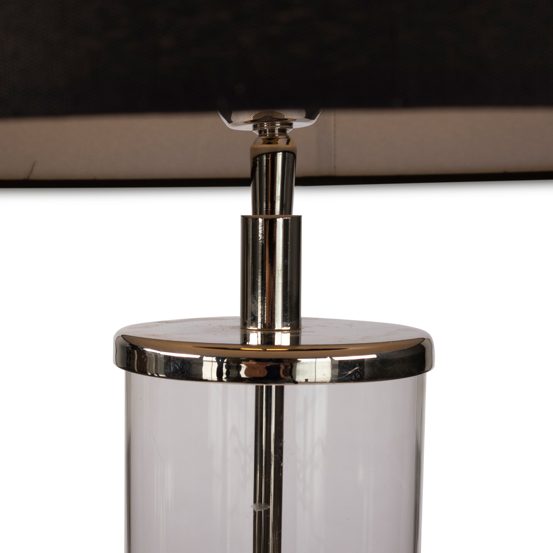 Provence Table Lamp beautiful clear glass tube, with Polished Nickel base & linen shade.