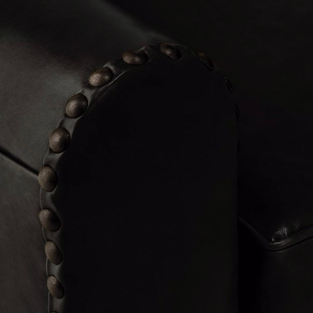 Grounded in American West design elements—an enduring source of inspiration for Mr. Lauren—this 1940s-style lounge chair is hand-upholstered in soft cowhide and finished with bold nail-head trim and classic single-welt edges. It features a plush spring-down cushion and a solid maple wood plinth base.