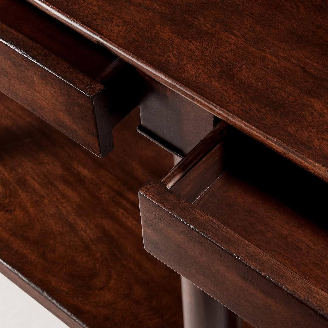 Subtle yet elegant, Ralph Lauren’s Dalehurst console table is crafted from solid wood with fine crown veneers. It features hand-carved pillar supports and three drawers with deftly concealed hardware.