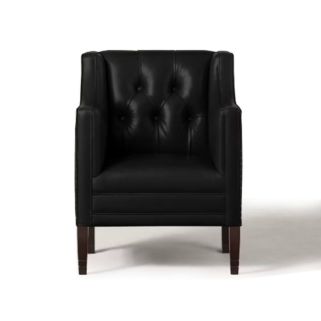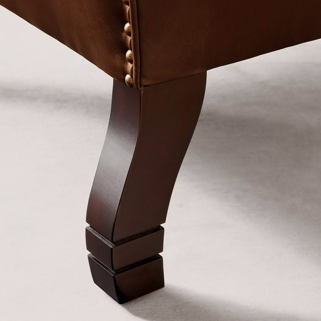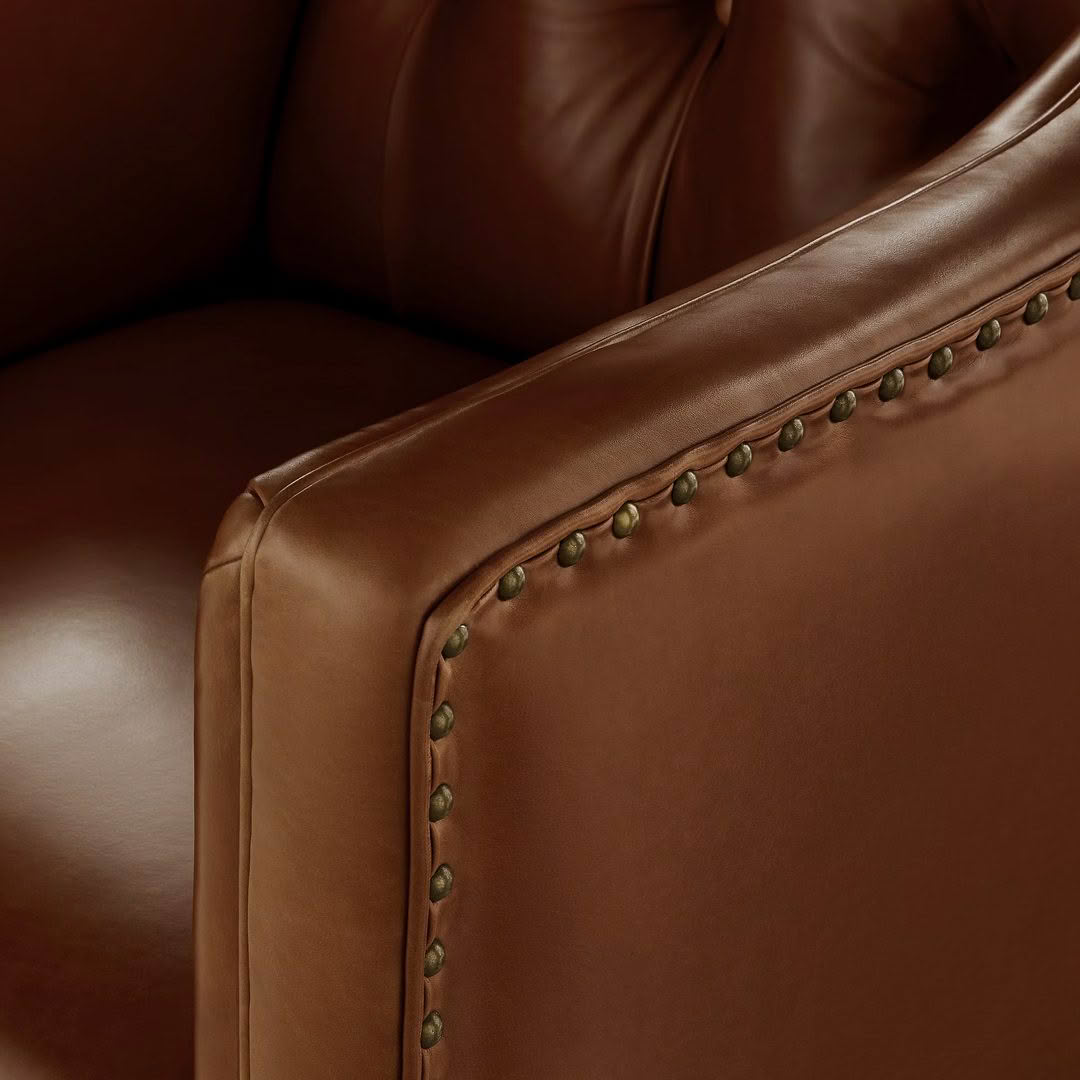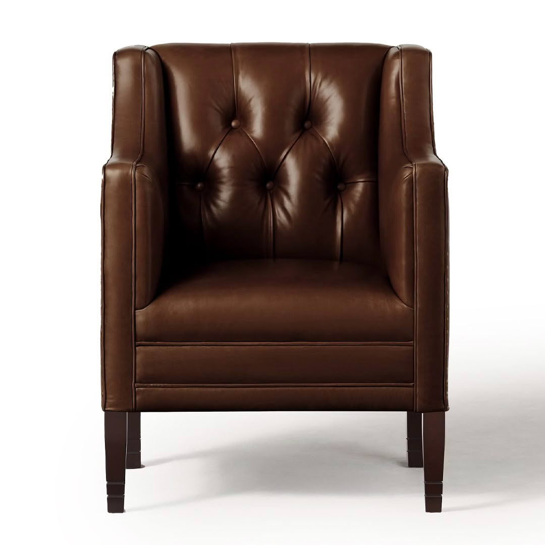 Taking cues from the classic British club chair, this interpretation features a scaled-down silhouette with button tufting at the back and sides. Tailored piping and nailhead trim accent the minimalist styling.
