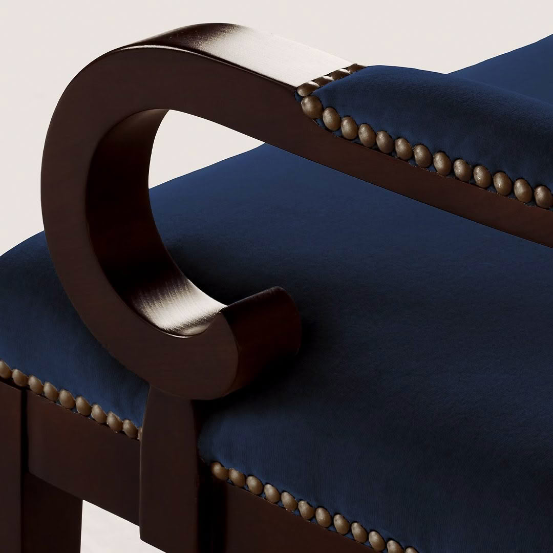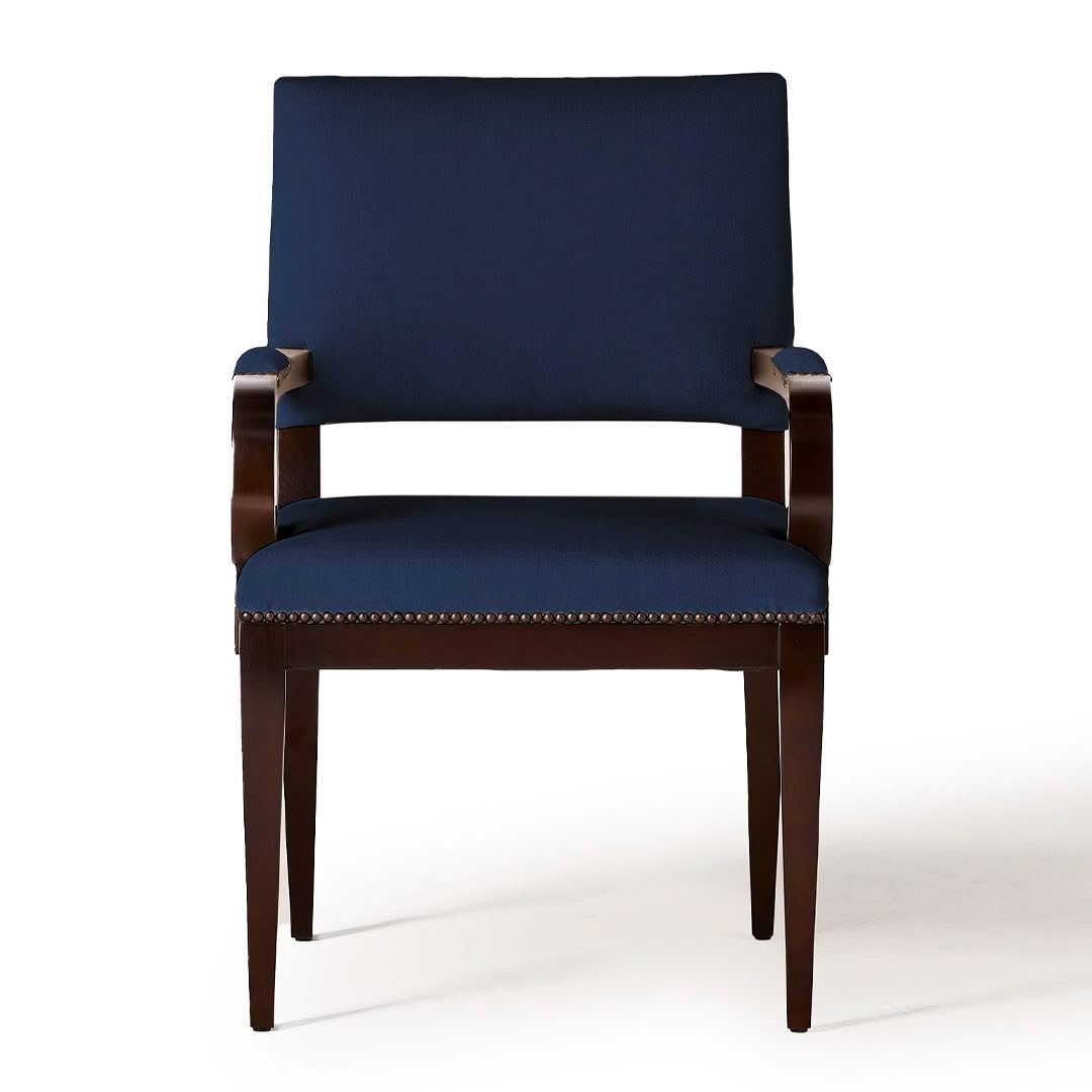Ralph Lauren’s Mayfair collection is inspired by the elegance of Mediterranean design with a hint of Old Hollywood glamour. Trimmed with delicately scaled brass nailheads, this dining chair features gracefully curled wooden arms and hand-upholstery.