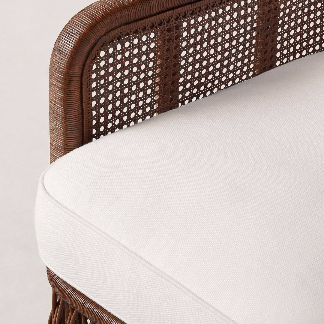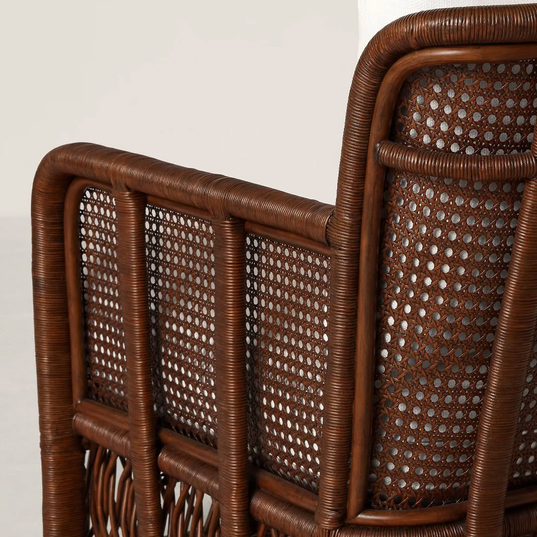 Ralph Lauren’s Medina lounge chair updates the classic silhouette of a 1940s club chair with a woven wicker frame and plush cushioning for casual comfort.