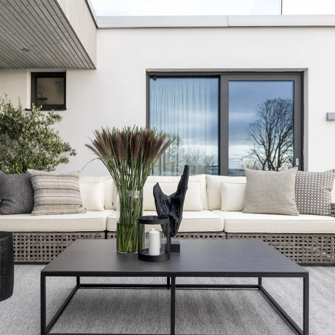 The Romano Coffee Table is the perfect combination of style and functionality for your outdoor space. The Romano Outdoor Collection features a sintered stone top with a black aluminium base.