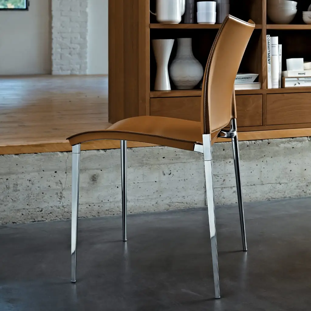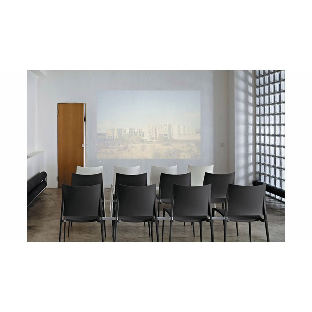 Coexisting in the Sand project are characteristics that are hard to combine in a single chair: refined aesthetics, great comfort, lightness and sturdiness. In the precious leather or hide covered versions, advanced production technology is perfectly blended with the inimitable skilled man labour. Light, stackable, available in outdoor version: besides being ideal for domestic use, Sand is also perfect for public settings. Stacking chair with or without armrests, die-cast aluminium frame. Fibreglass reinforced polypropylene seat and back in the colours: white, medium grey, anthracite, red, bulgarian red, turtle-dove, sand. Lacquered frame in the same colour as seat and back, lacquered arctic grey or in the finishes polished aluminium, lithium, matt ossidiana and polished ossidiana. Lacquered versions with polypropylene seat and back also for outdoor use. Also available with leather, eco-leather, cow-hide, cuoietto or fabric cover. Spacer for linking in transparent polycarbonate. Stool (not stackable) has the same characteristics of the chair.