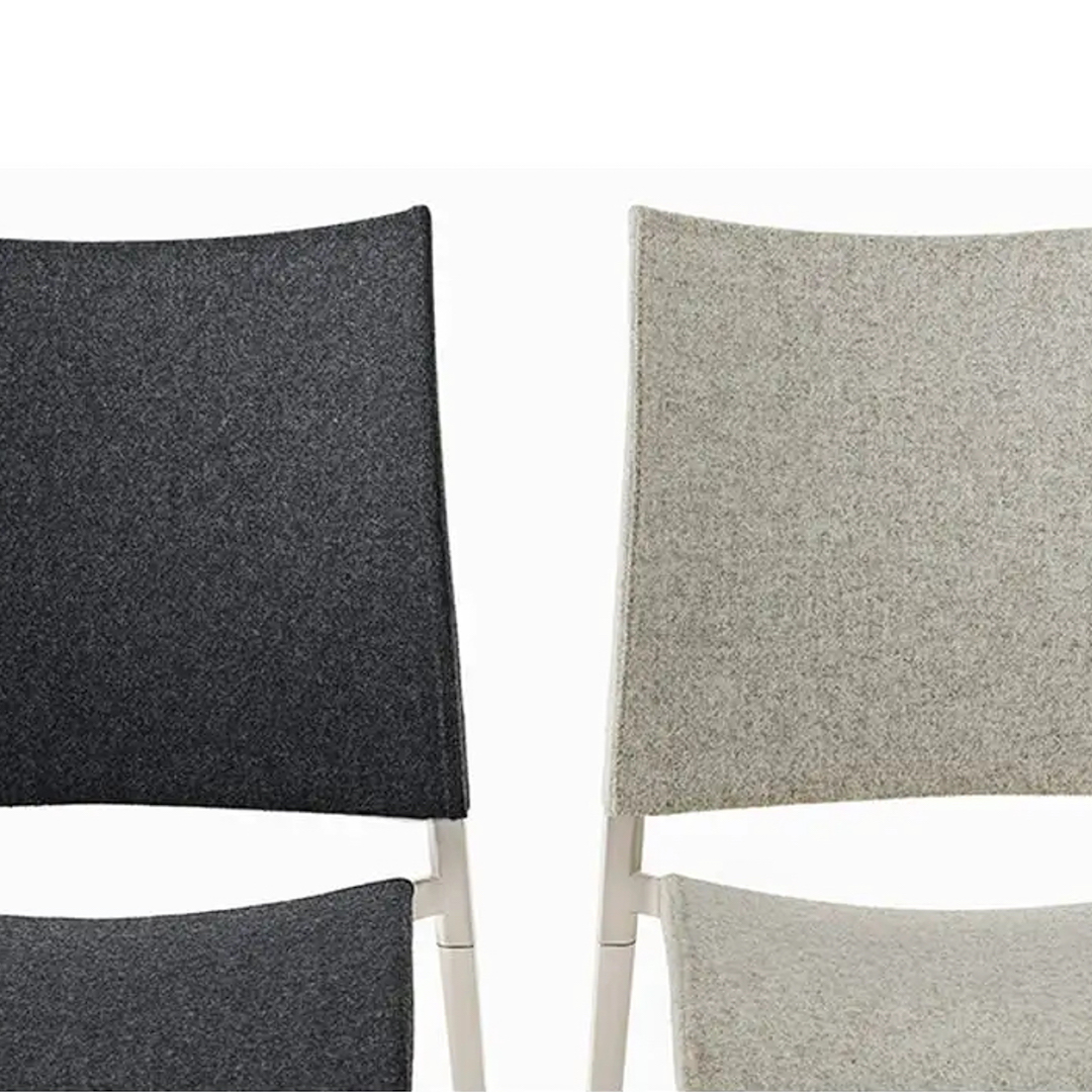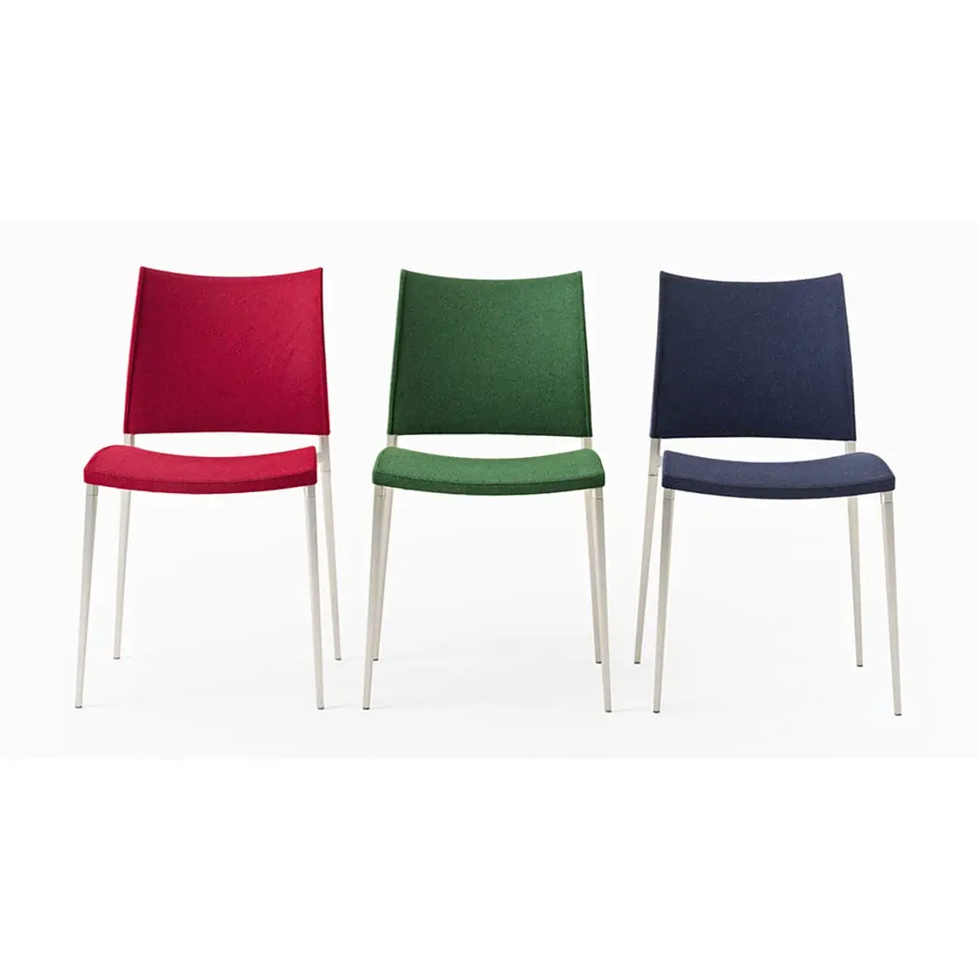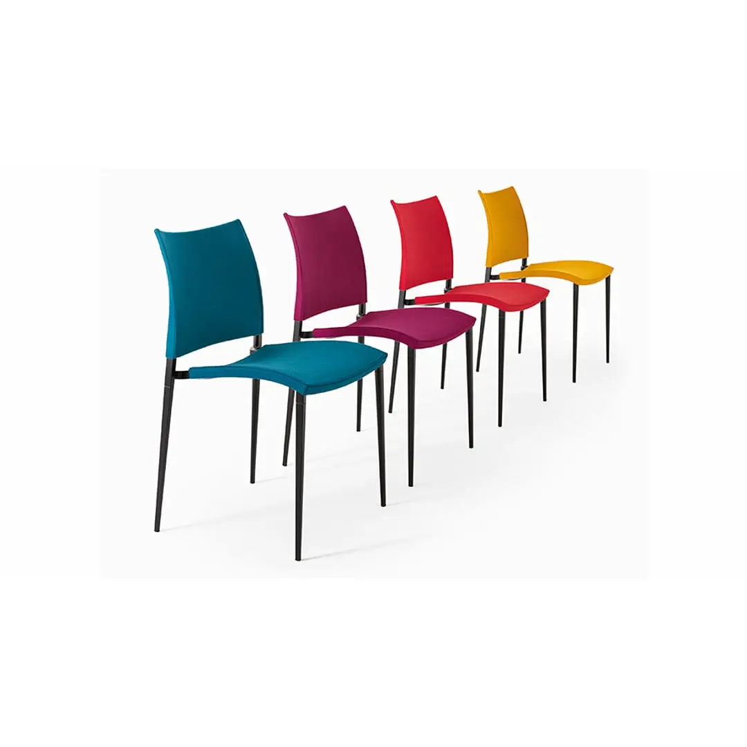 Stacking chair and barstool with seat and back covered with fabric and legs in die-cast aluminium.