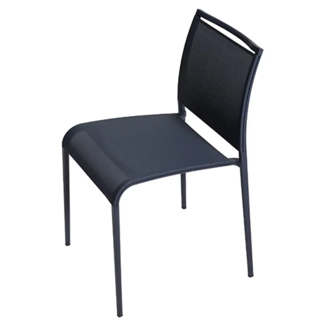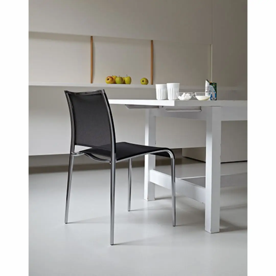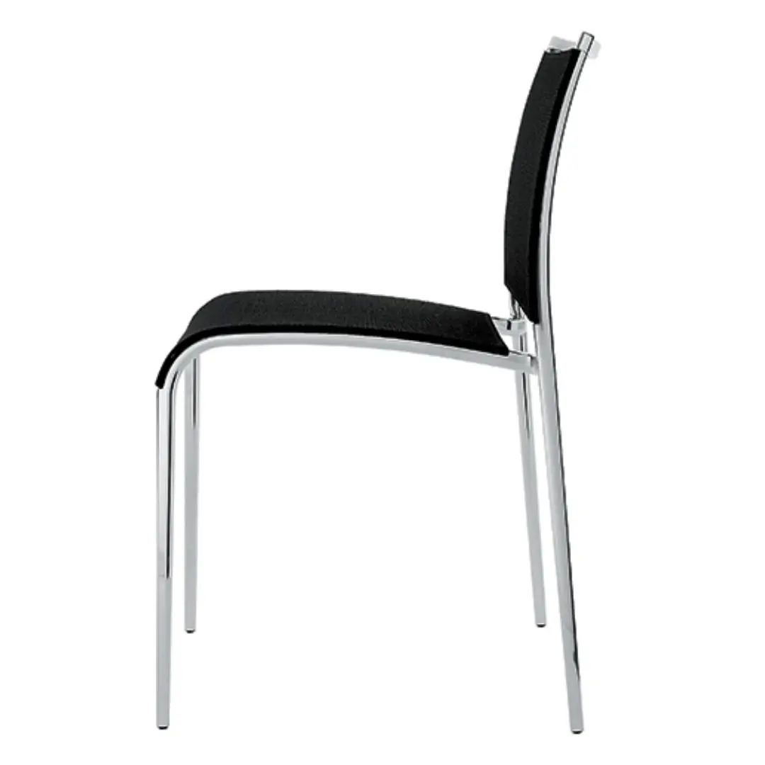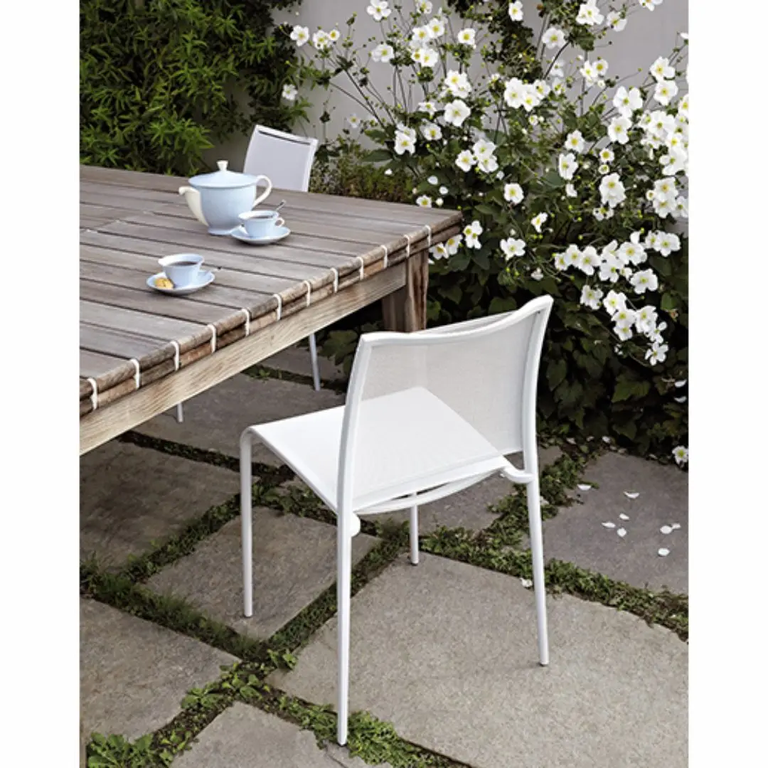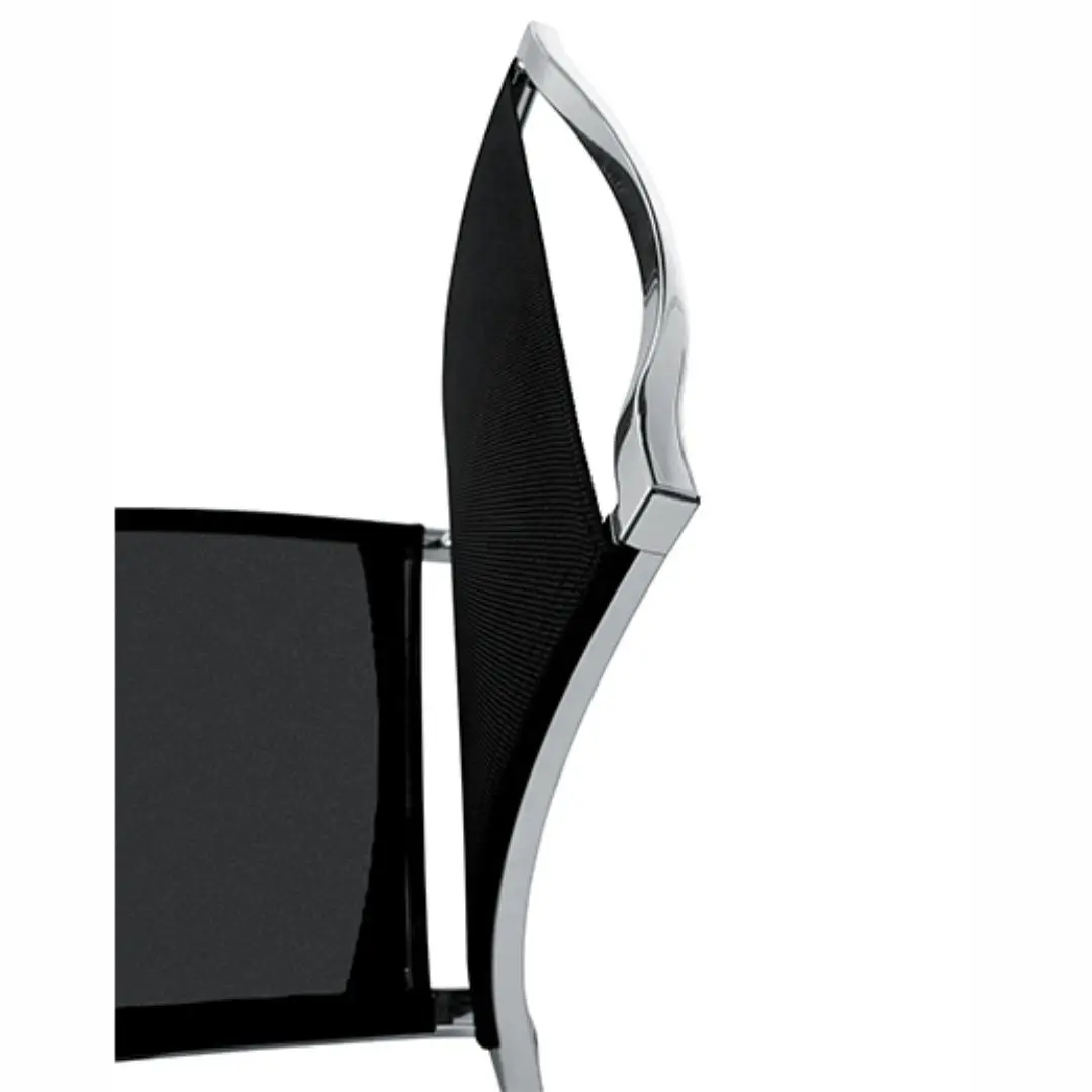 Light to the sight and in the weight thanks to a structure in die-cast aluminium and to a polyester net seat and back. Solid and strong Sand Light is a suited contact between structural stability and formal sobriety. Stackable chair with or without arms, die-cast aluminium frame. Seat and back in mesh made of polyester thread covered with PVC and hemp (Sand Air Canatex) in the colours black, cocoa brown, turtle-dove, sand, straw-colour, medium brown, brown, red or polyester mesh covered with PVC (Sand Air Duo) in the colours grey piombo, grey ghisa, blue. Frame in chrome, lithium, matt ossidiana, polished ossidiana or lacquered in the colours black, cocoa brown, turtle-dove, straw-colour, testa di moro, medium brown, brown, anthracite, graphite, red, blue. Also for outdoor use (except frame in chrome, matt ossidiana and polished ossidiana).