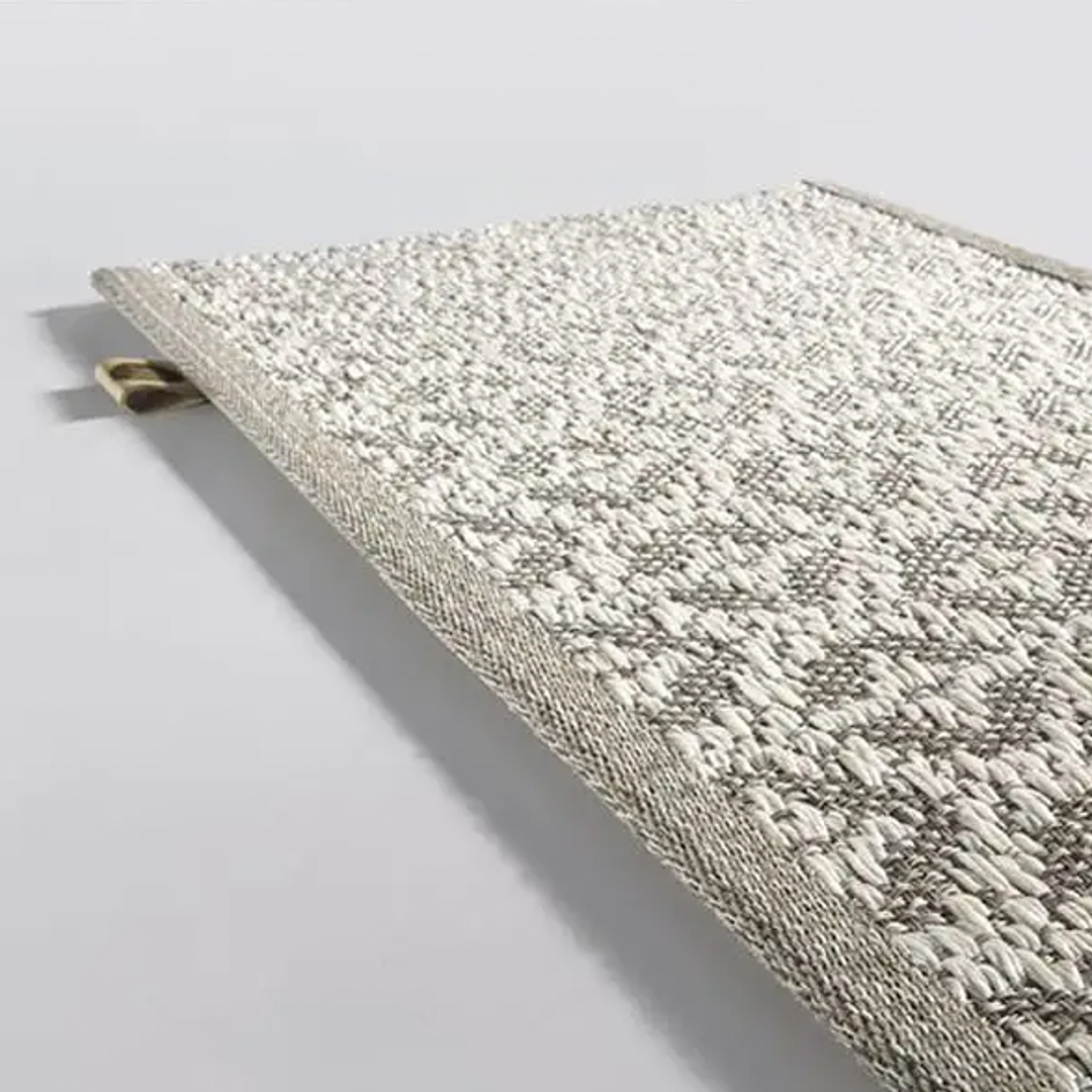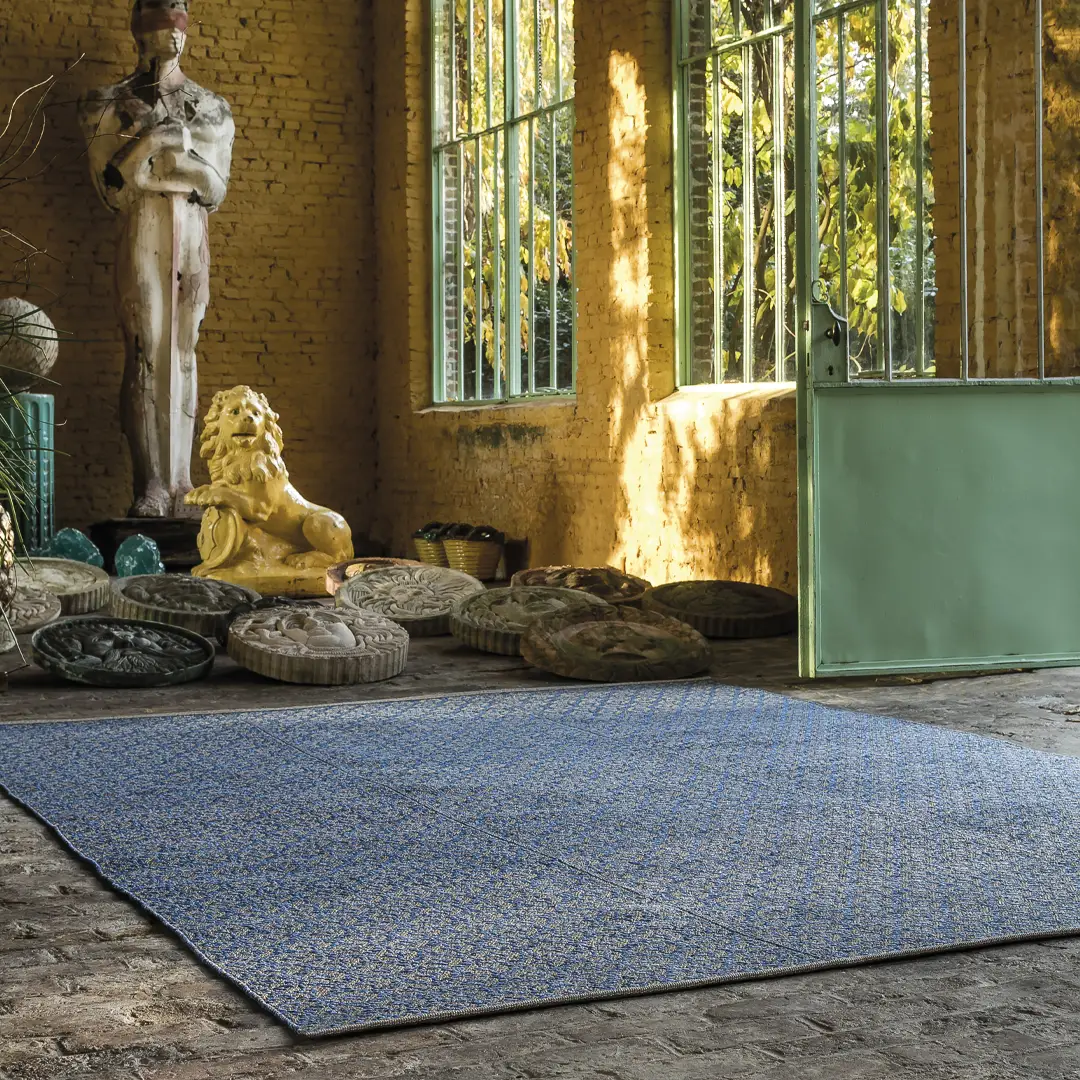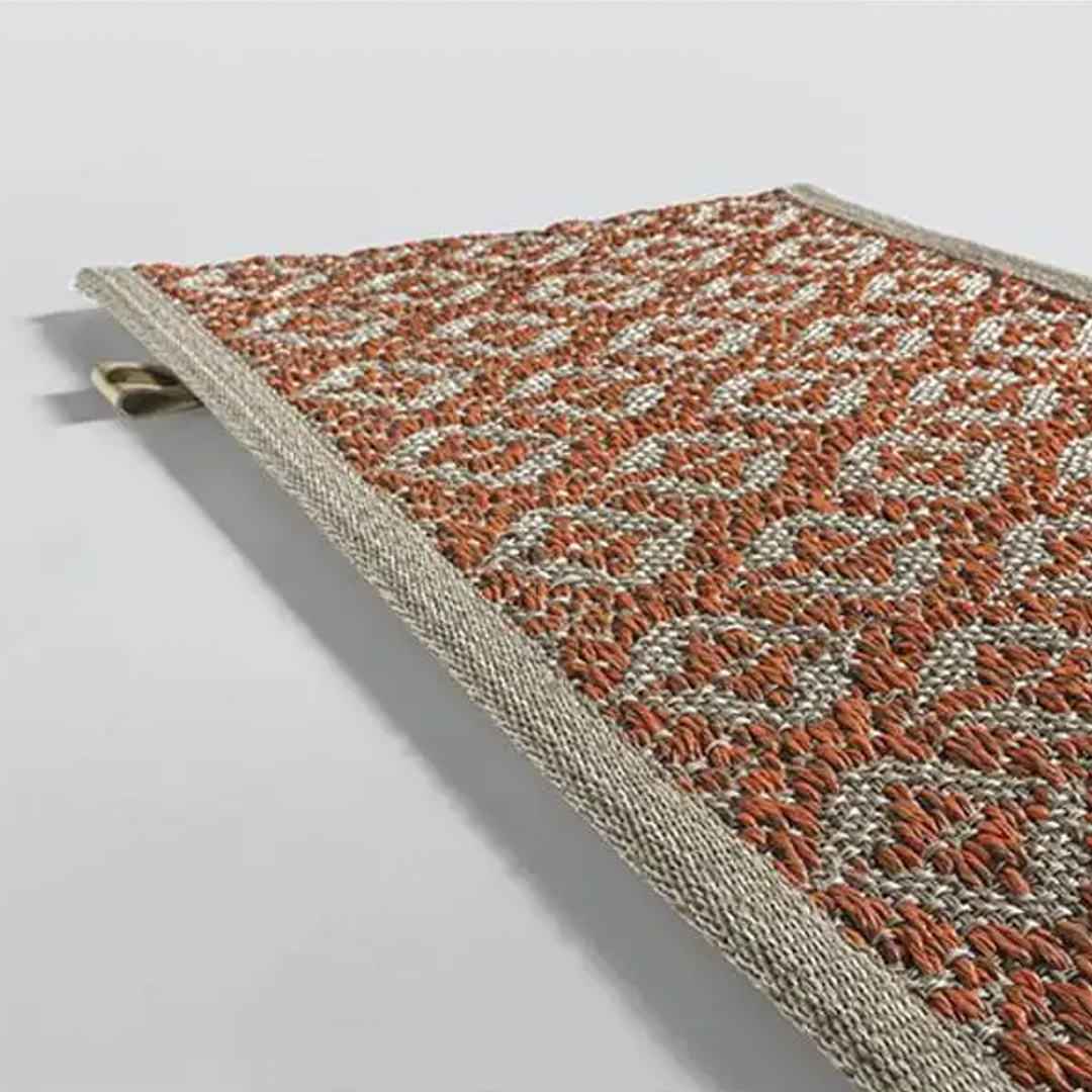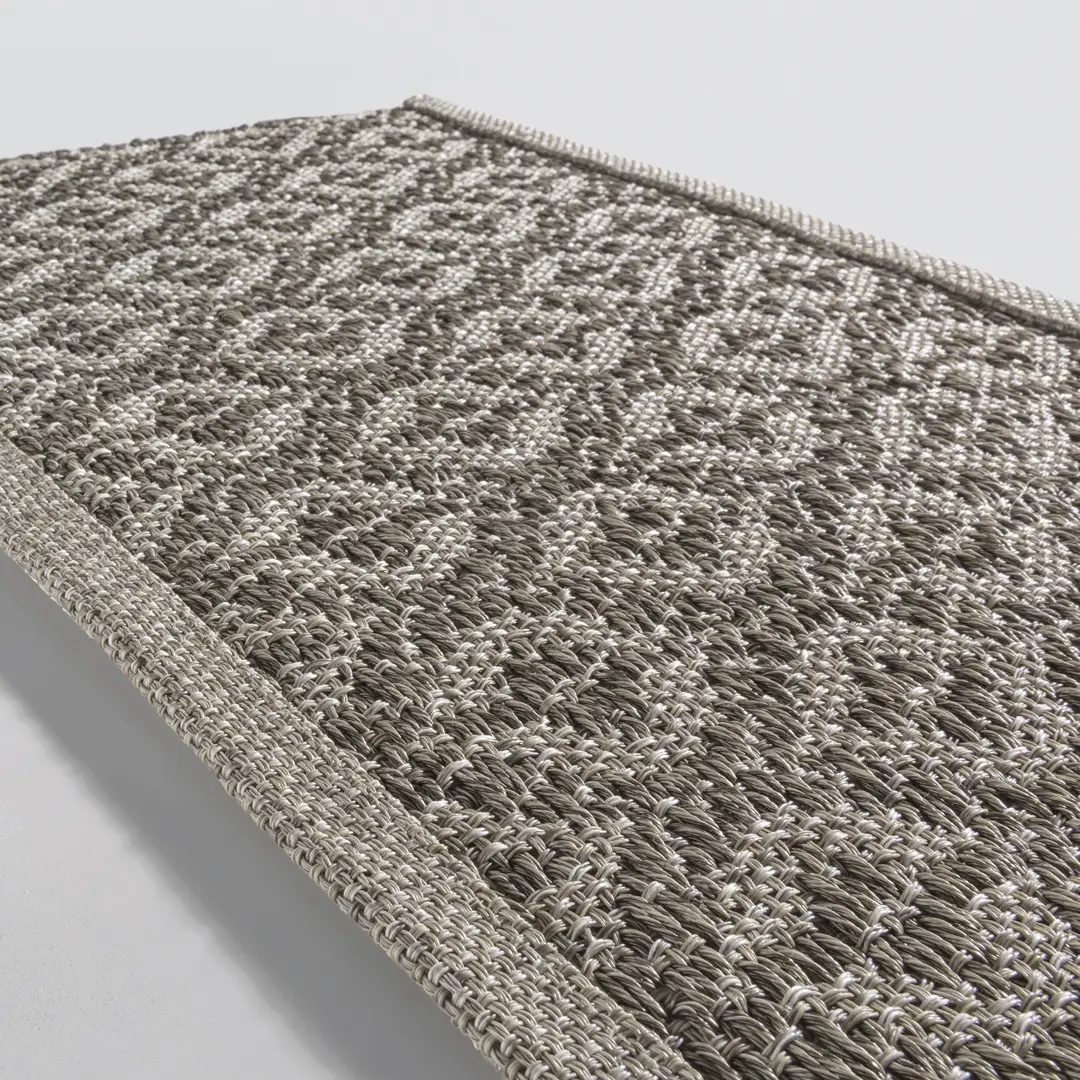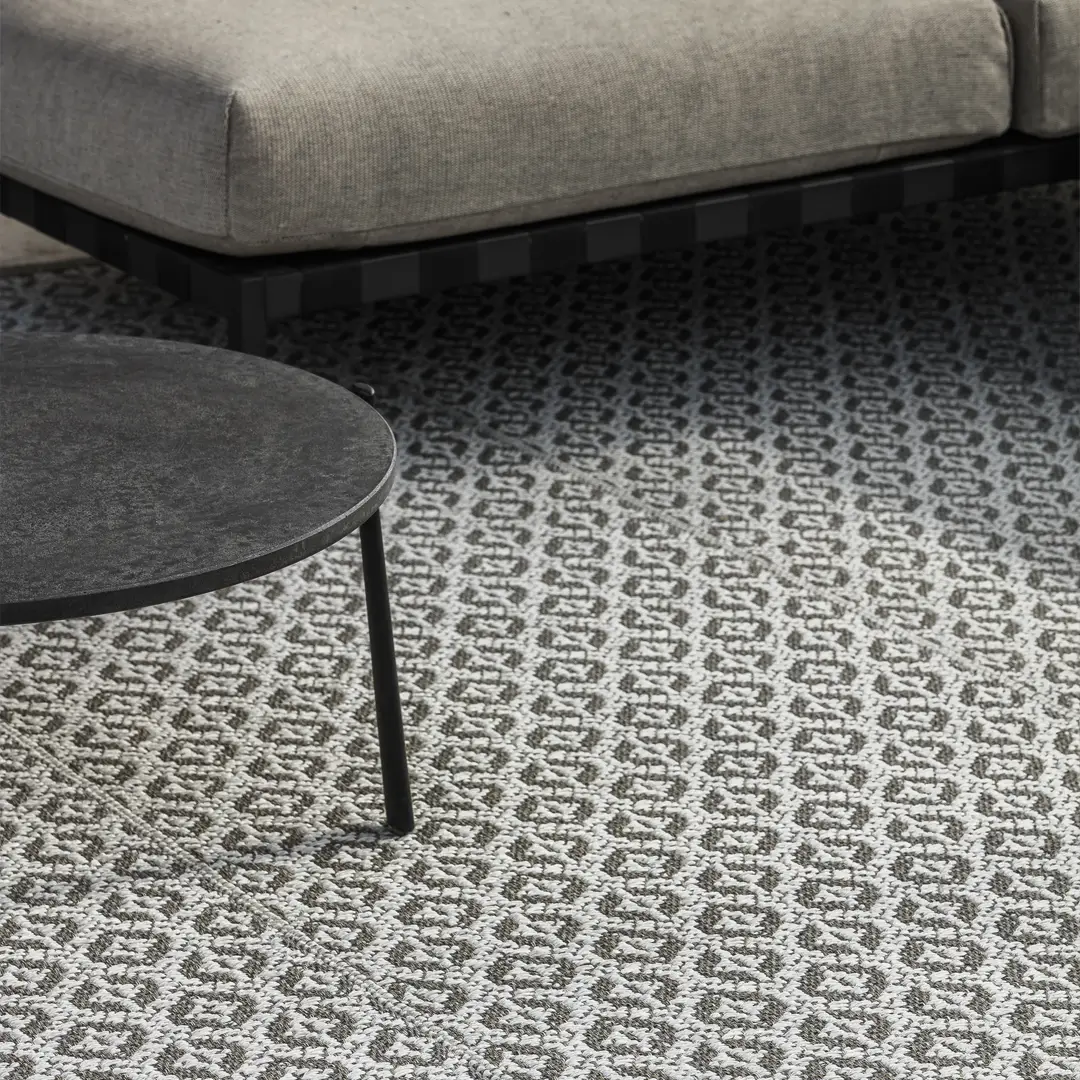Terrazza, the latest addition to the outdoor collection, consists of woven strips of 70 cm stitched together by hand to obtain an elegant rhythmic motif.
