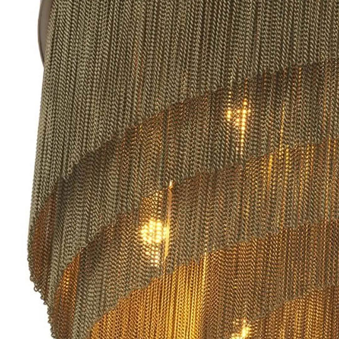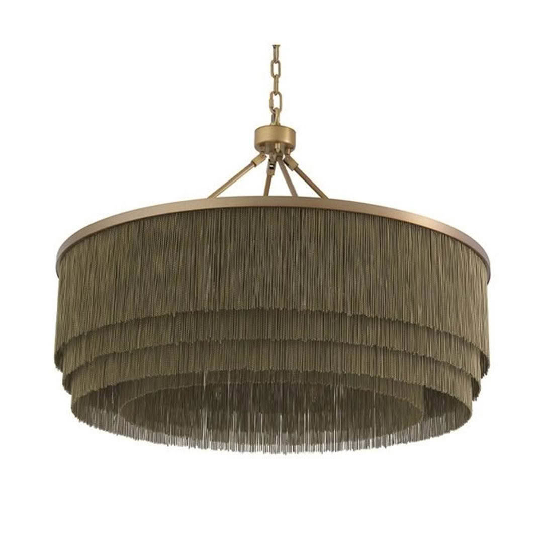 Provided with an antique brass finish, the large Tissot Chandelier lends a fanciful touch to your space due to its eye-catching design. With four rows of thin chains that remind one of fringe flapper dresses from the 1920s, it radiates the glamour and extravagance of The Great Gatsby. Combine with one or more small Tissot Chandeliers for added dimension.
