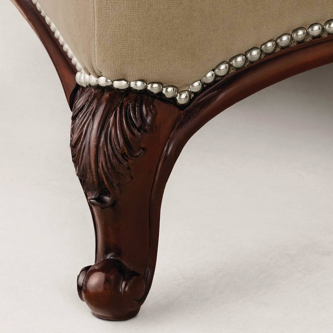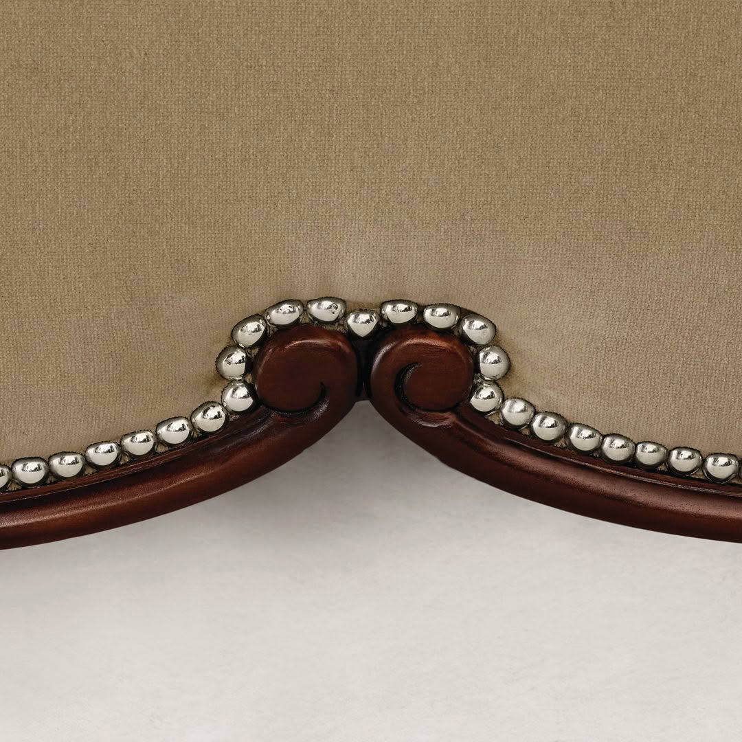 Beautiful contours of rich khaya wood outline the Tourville bed, which offers a modern interpretation of classic French design. Set upon decorative scroll feet, the elegant silhouette is expertly upholstered at the headboard, footboard, and rails.