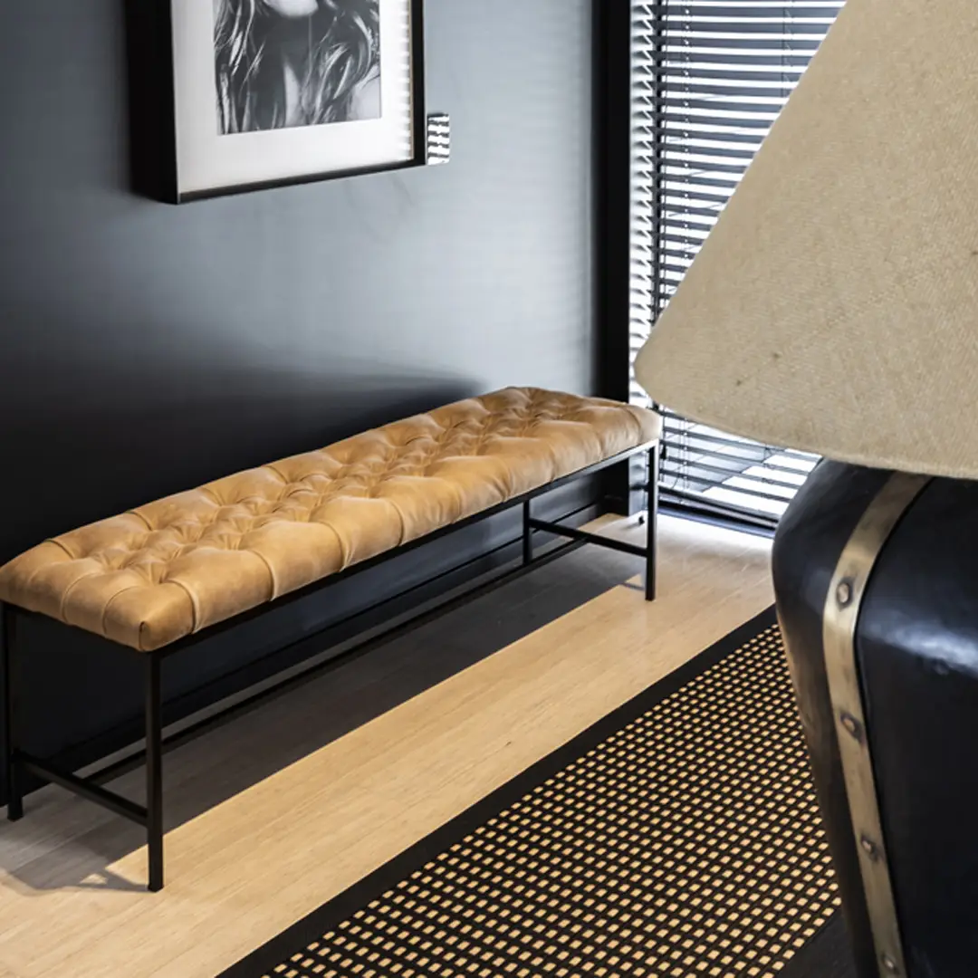 The Chamonix Ottoman features a deep buttoned top and a powdercoated matte black steel base. Made in New Zealand in your choice of fabric or leather and is made to size.