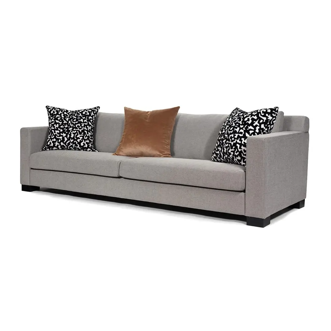The MONACO sofa is a very relaxed, generous sofa which has been designed to sit alongside the Monaco armchair. Tailor made in your choice of fabric or leather, feather / fibre seat and back cushions. Available as an armchair along with various sofa sizes. Made exclusively in New Zealand.