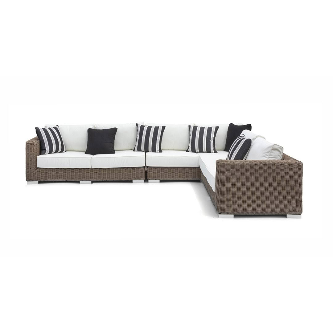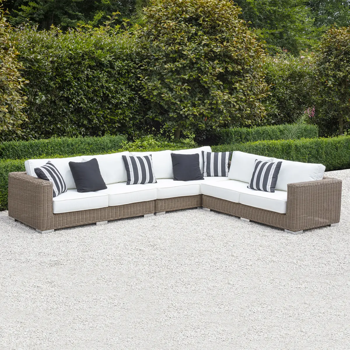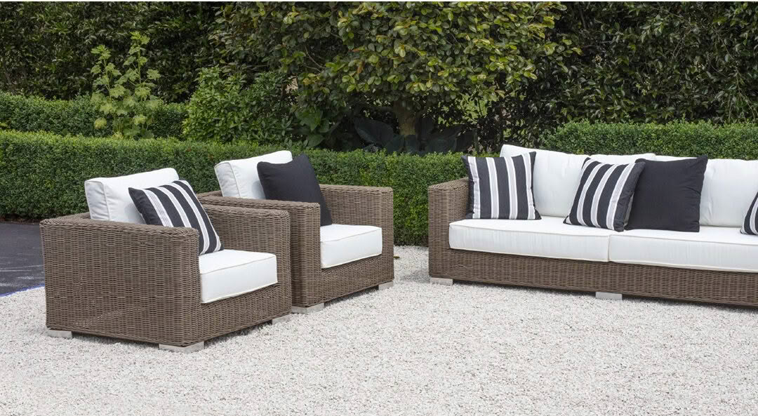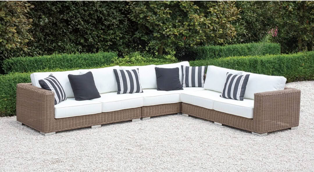 The RIVIERA collection of outdoor furniture features a classic outdoor wicker fibre, solution dyed acrylic fabric and all made in sumptuous proportions, configuring modular pieces, sofas and armchairs.