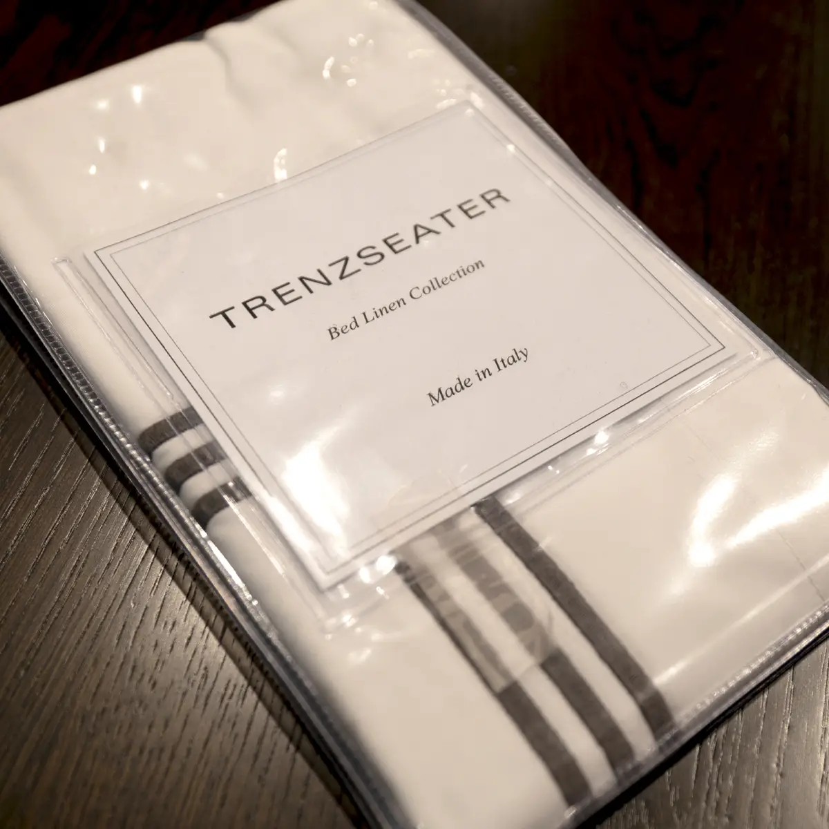 The TRENZSEATER Bed Linen collection is made in Italy by a 3rd generation Florentine linen maker who combines old world tradition with modern innovation to create this impeccable bedding. The 600 thread count sateen offers excuisite softness and luster 3 rows of masterful embroidery.