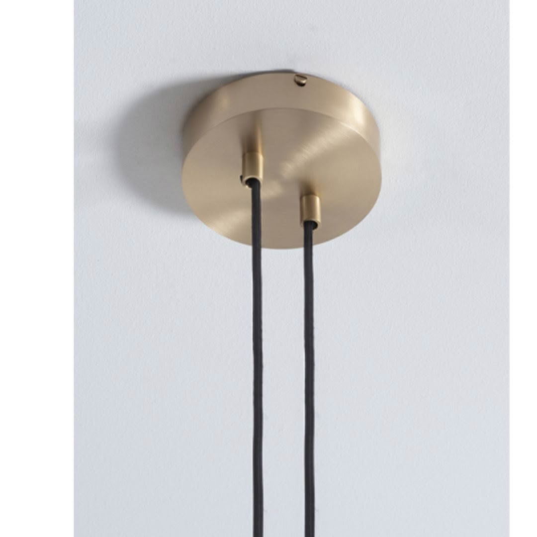 Elegantly floating off twin cords with a soft, double-sided alabaster facade. The opal glass glows from the centre and gives a hint of illumination between the brass blades.