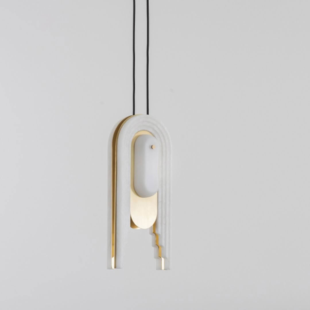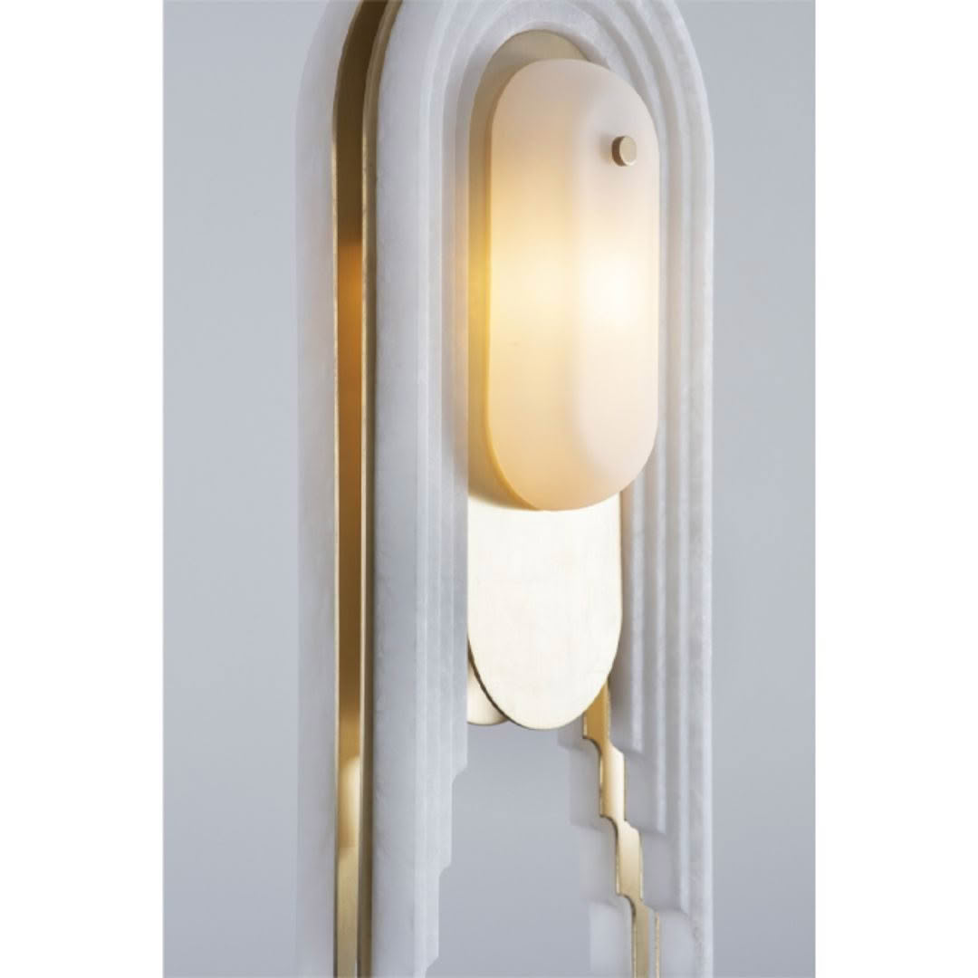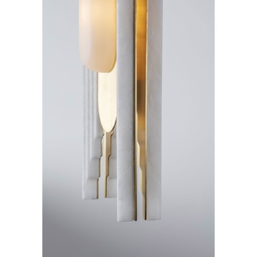 Finish: Alabaster, Brushed Brass + Acid Etched Glass