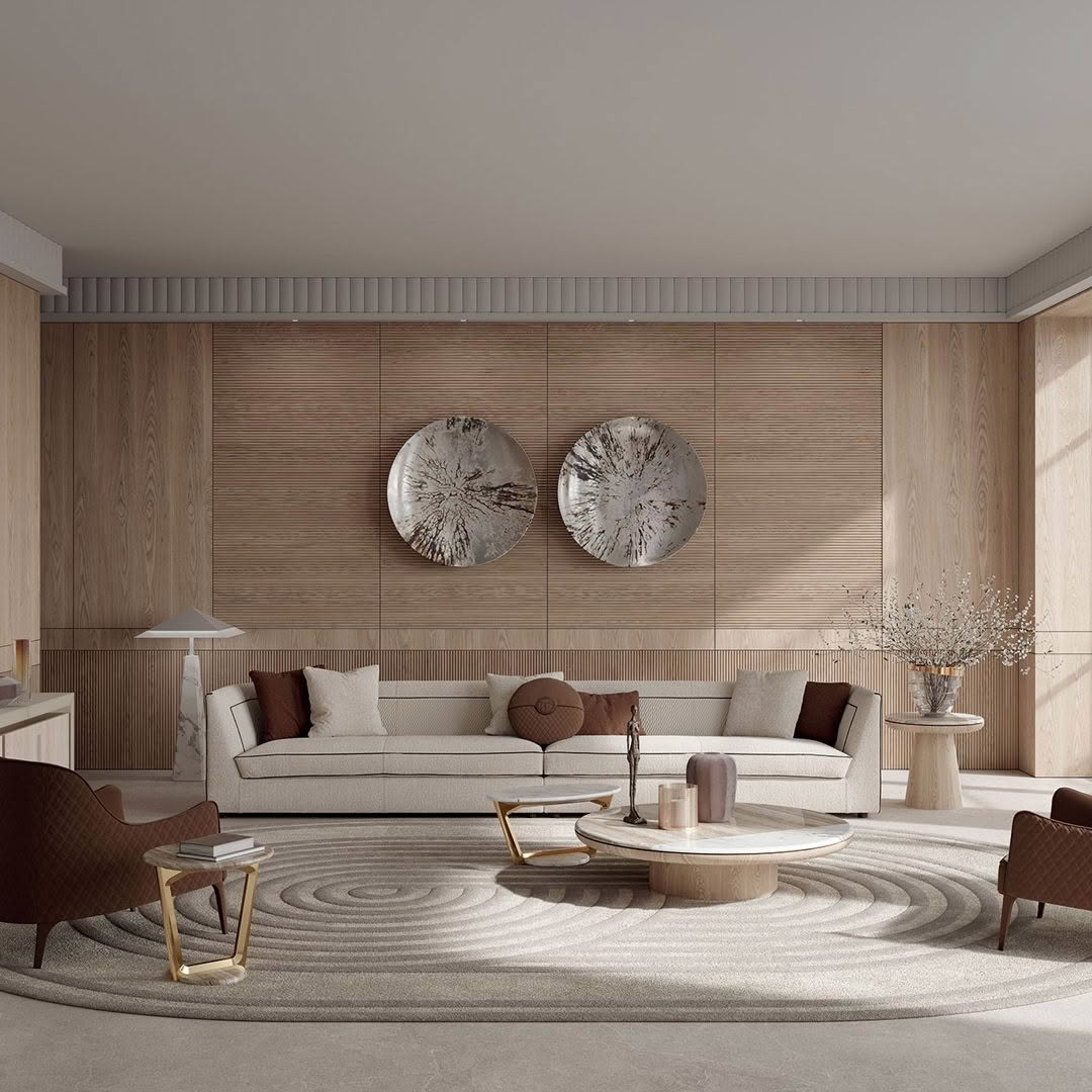 Elegant lounge with modern lighting and stylish furniture