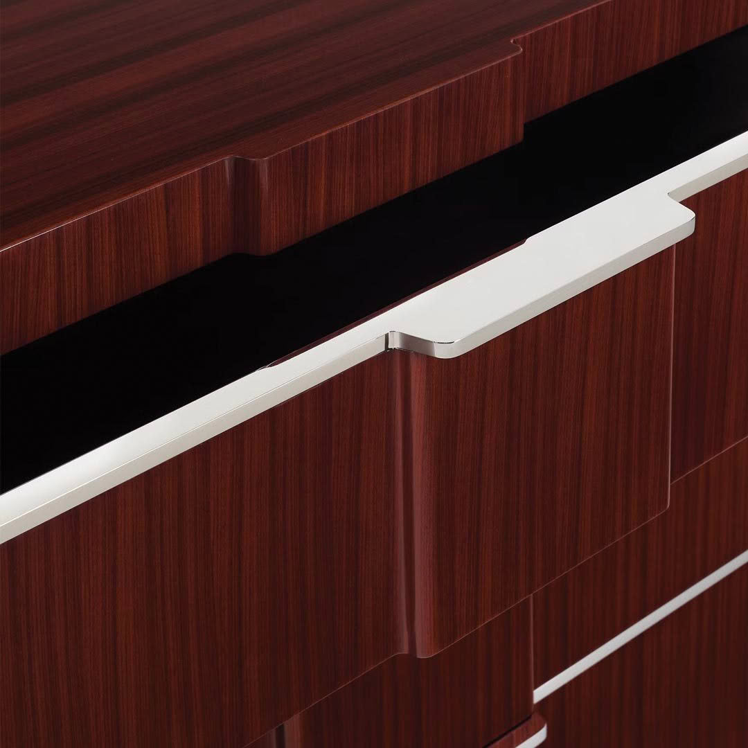 Drawing inspiration from luxury sports cars, the Warren nightstand embodies a spirit of modernity and timeless design. The three-drawer silhouette combines rich rosewood veneer and polished stainless steel.