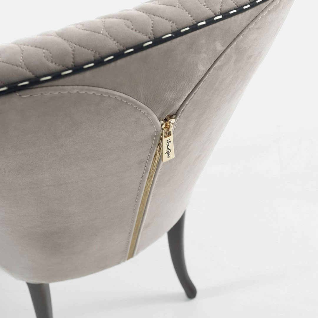 The delicate proportions of the Ambra chair enhance the braided quilt made on the seat and on the inside of the backrest. The essential lines make it perfect to furnish every type of environment and the solid wood legs enliven the ensemble for a graceful and tasteful result.