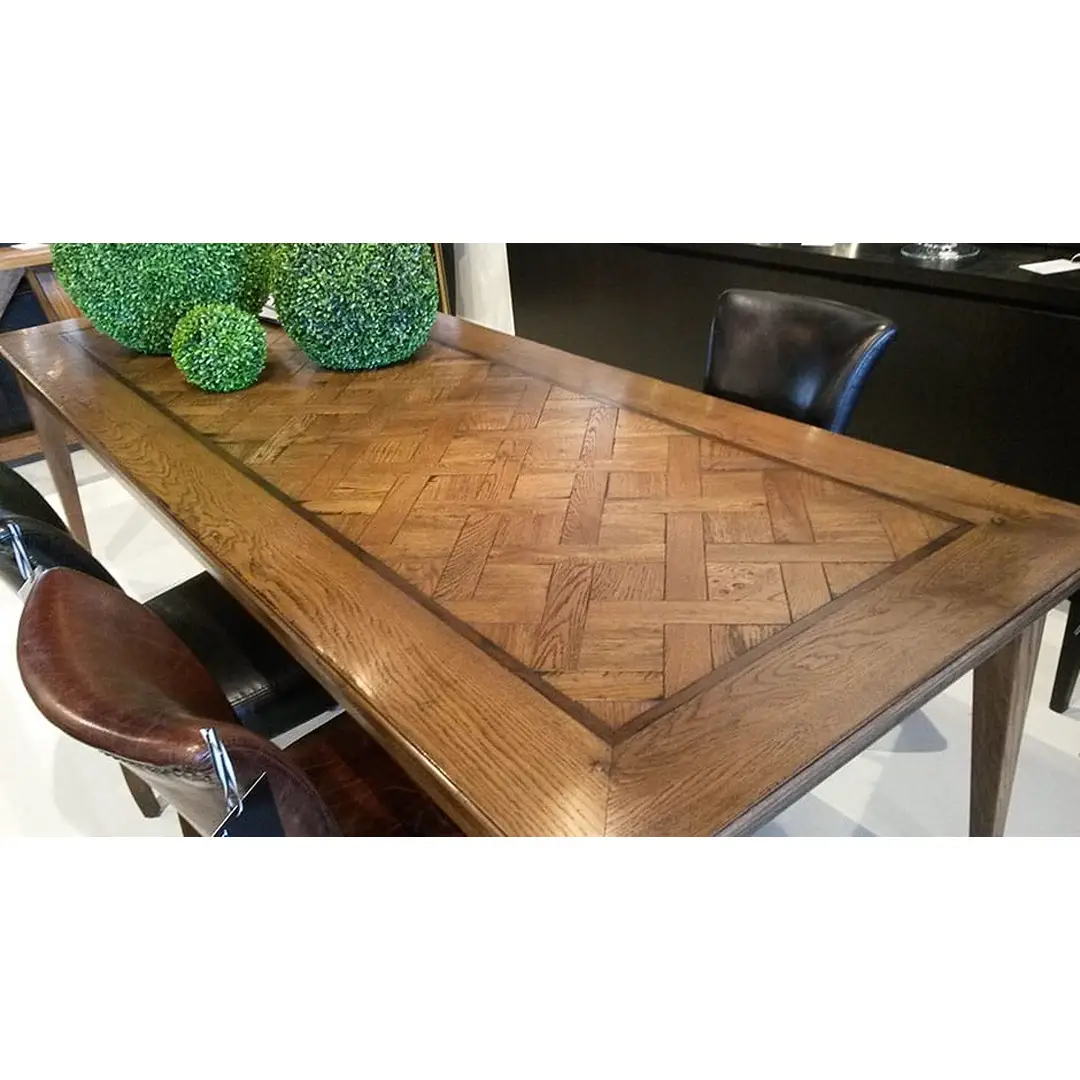 The Barcelona Dining Table is part of our stunning parquet table collection exclusively made in New Zealand. The timeless design has beautifully mitred edges and tapered wooden legs.