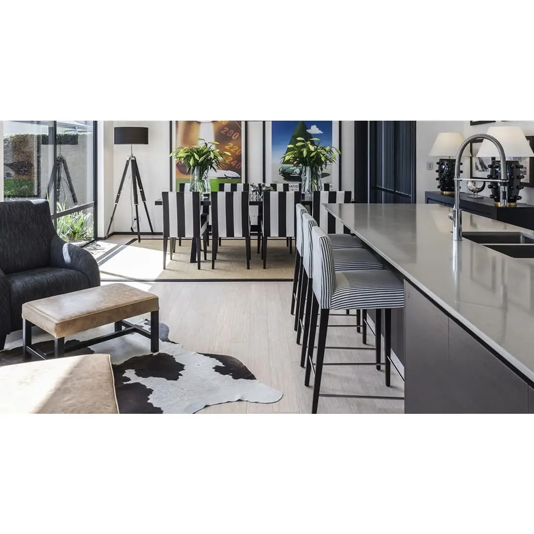 The Cabana Barstool is an elegant barstool design with a sleek tapered leg and stainless steel rails. Tailor made in New Zealand in your choice of fabric or leather.