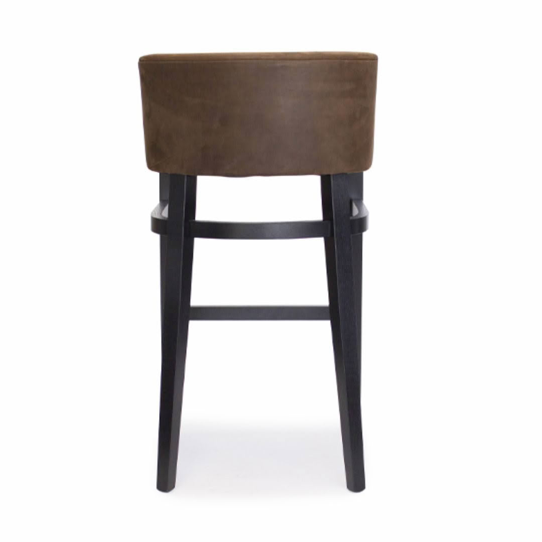 Elegant barstool with tapered leg, upholstered seat. Made with your choice of fabric or leather.