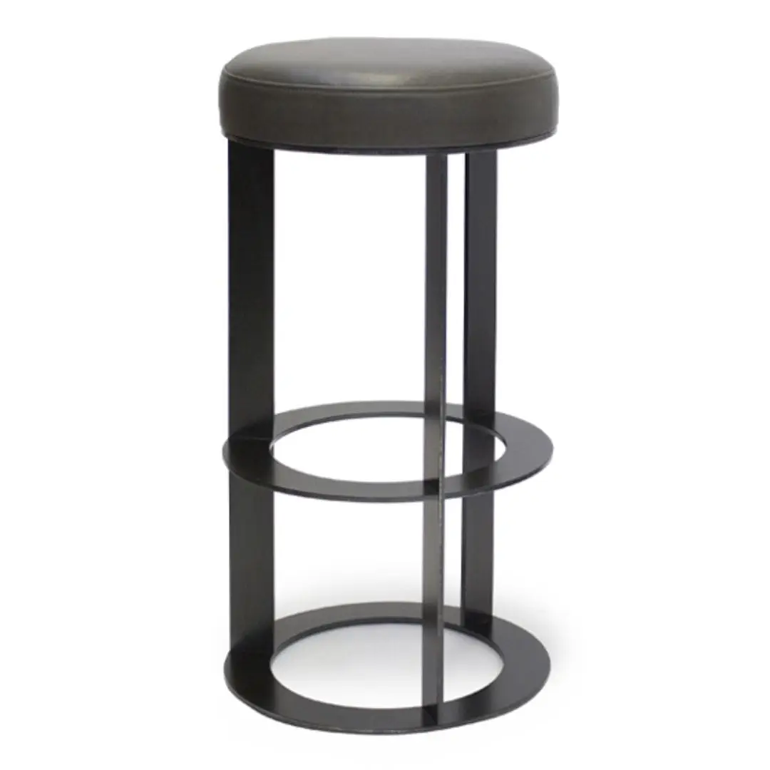 Ted Barstool is an elegant design with a round seat, Blue gun steel base with 3 legs. Tailor made in New Zealand in your choice of fabric or leather.