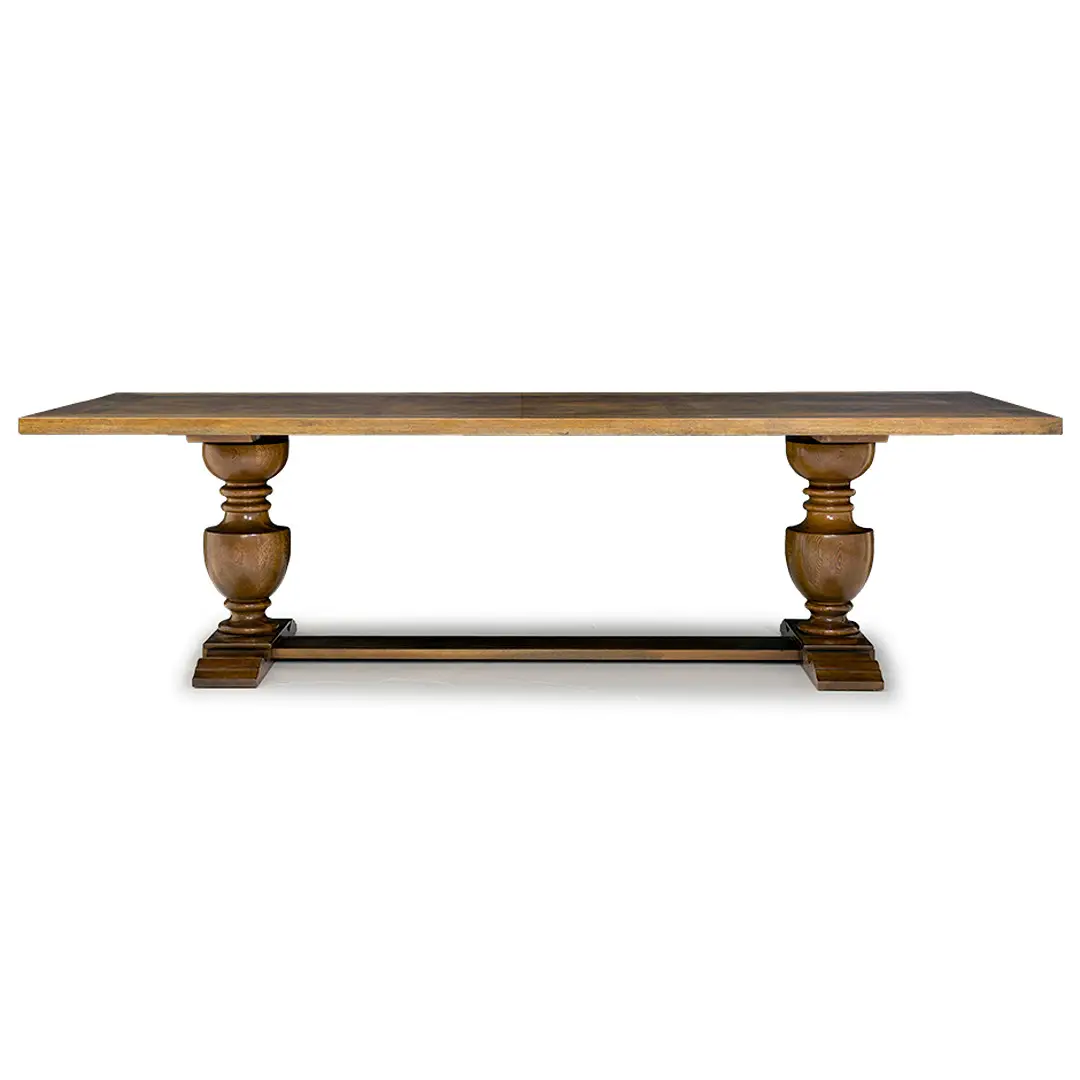 The CHALET Dining Table is our latest table design. It is made from solid American Oak and features a stunning parquet top and turned legs. It is available in two sizes – 2760mm x 1080mm and 2375mm x 952mm.