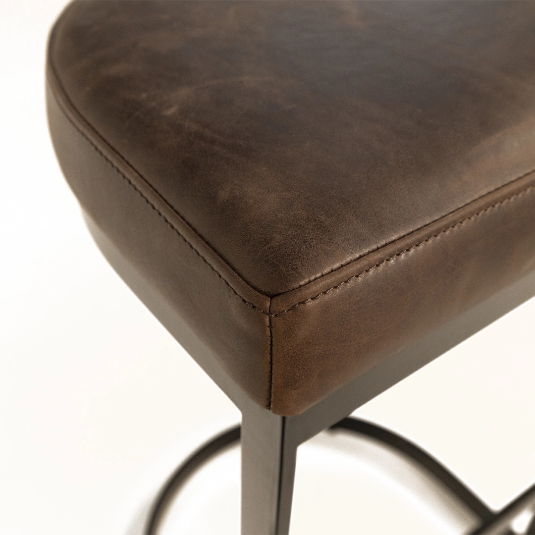 Dino Barstool is an elegant design with a half round seat, Powdercoated Matt Black Steel base. Tailor made in New Zealand in your choice of fabric or leather.