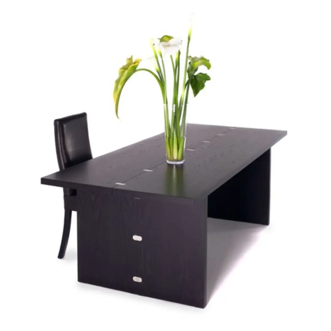 The QUATTRO table is an innovative design of ours which is characterised by a bi-folding top. This allows the table to be reduced to half the size to be used for a smaller dining table, entrance table or console, and when needed can be opened to its full size. Often used in boardrooms and apartment dining spaces. Exclusively tailor made in New Zealand, in American Oak and finished in any of our timber finishes.