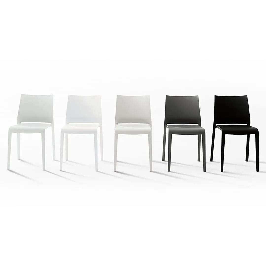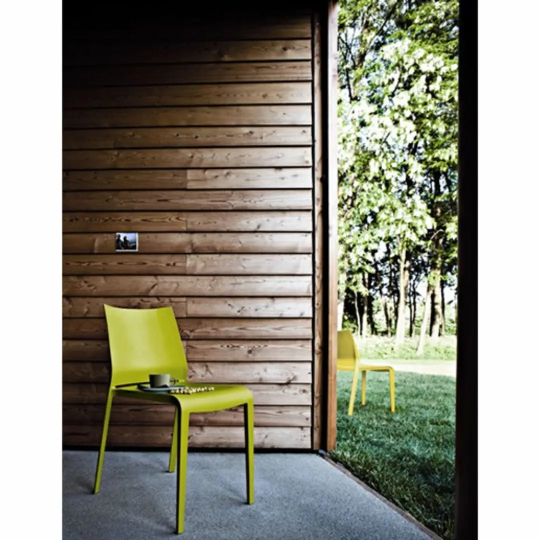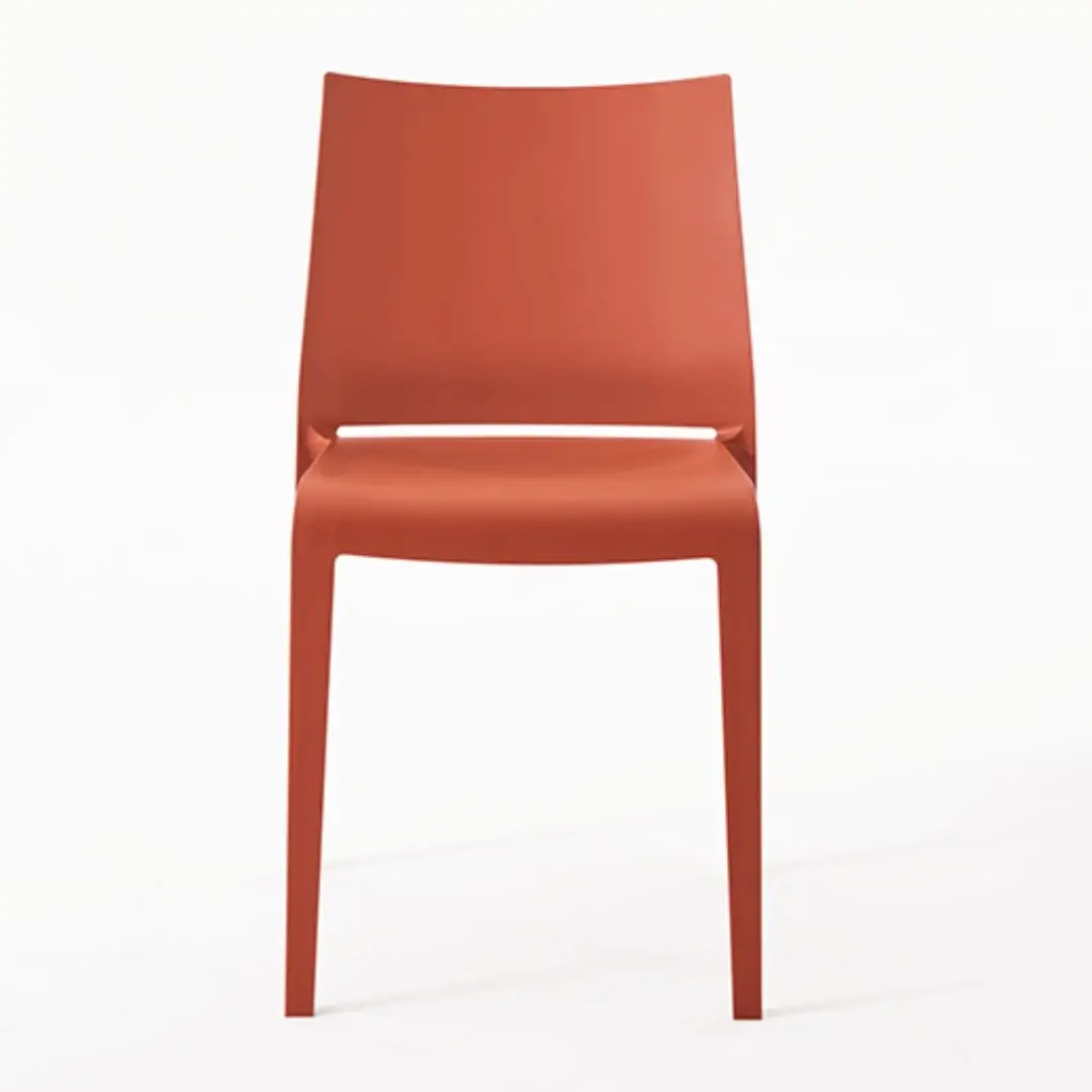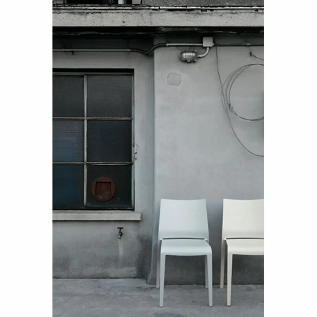 Comfortable, lightweight, stackable, formally refined in every detail. Riga is practical and robust maintaining a delicate elegance. Stackable chair made of polypropylene reinforced with fibre glass, produced with air moulding technology, suitable for outdoor use. Available in the following colours: white, light grey, “curry”, green “Gauguin”, dove, black, red, sand, grass green, anthracite, petrolio, ruggine.