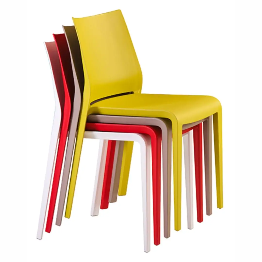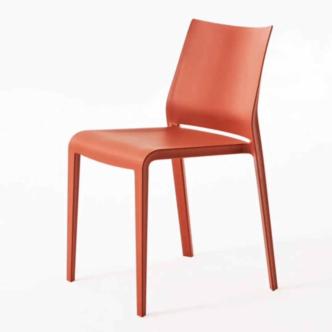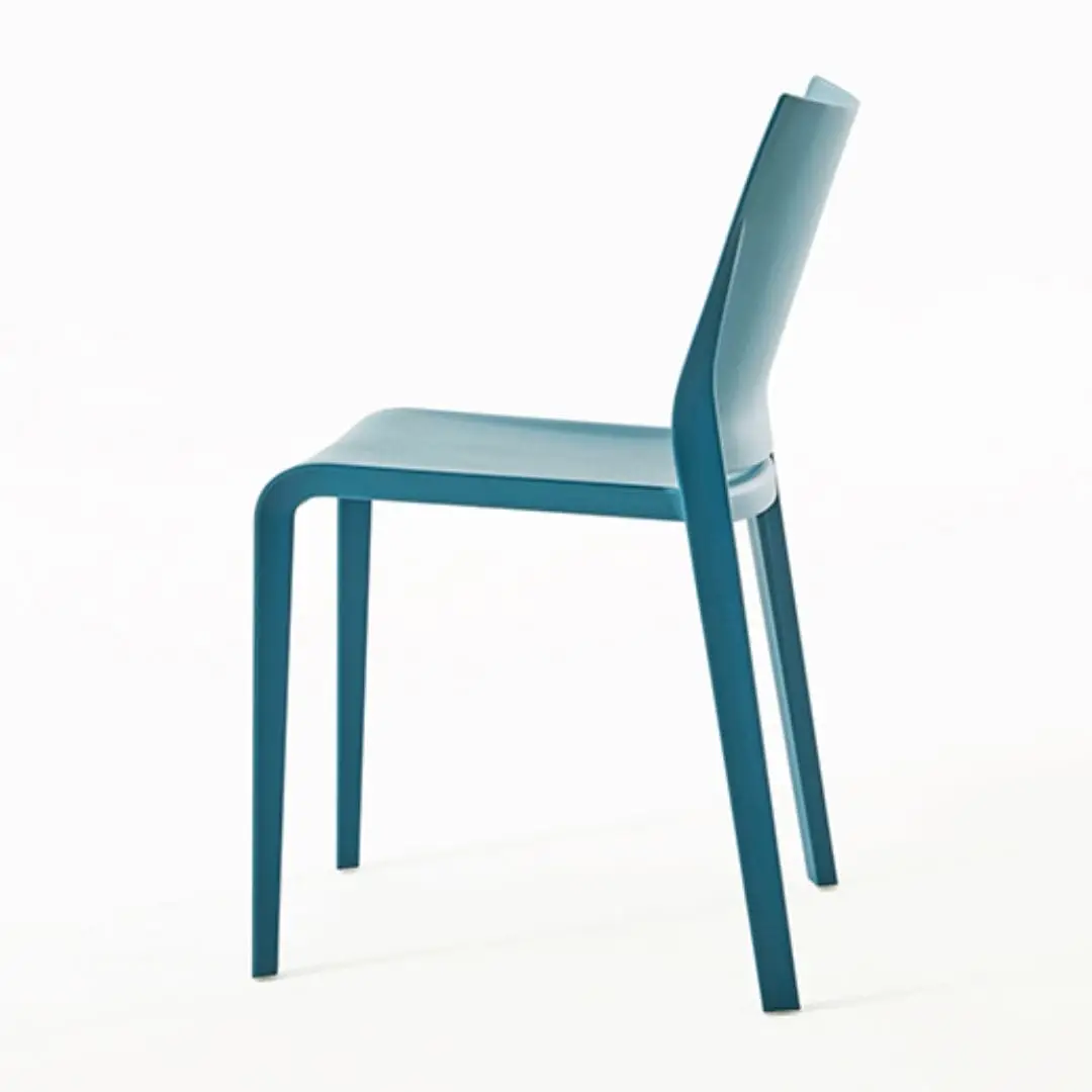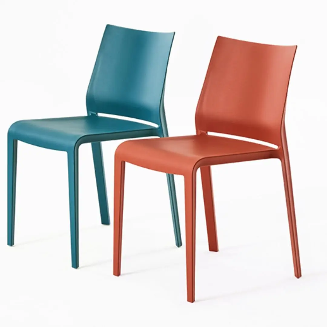 Comfortable, lightweight, stackable, formally refined in every detail. Riga is practical and robust maintaining a delicate elegance. Stackable chair made of polypropylene reinforced with fibre glass, produced with air moulding technology, suitable for outdoor use. Available in the following colours: white, light grey, “curry”, green “Gauguin”, dove, black, red, sand, grass green, anthracite, petrolio, ruggine.