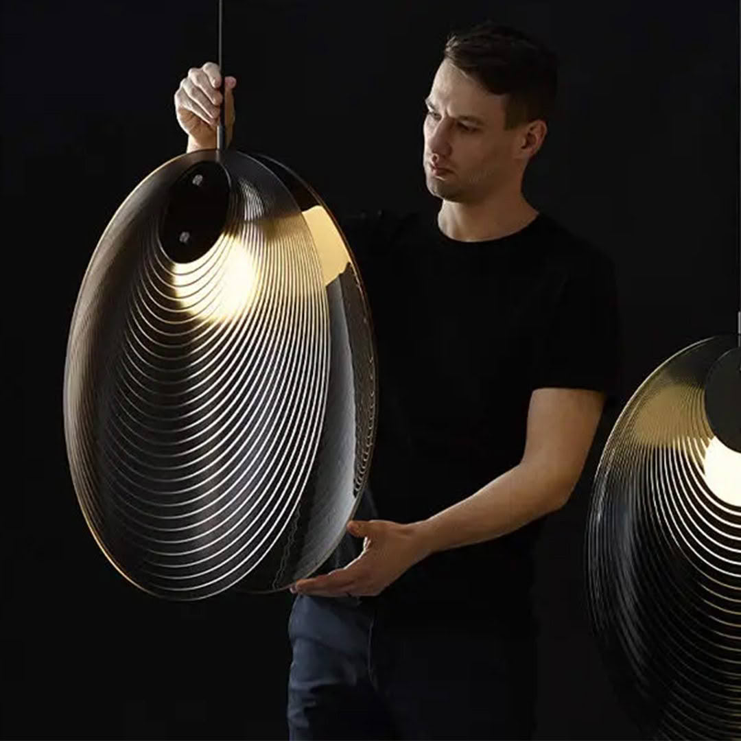The Ama Collection visually evokes the delicate shells of mussels that produce treasured pearls. Meticulously cut glass of substantial size encases a pearl in its center in the form of a light source providing soft ambient light.