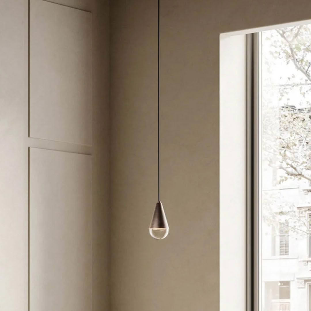 The clear-cut lines of the Dew collection of Italian indoor lamps highlight the pure nature of iron. The pendant lamp can be used on its own or combined with others to create linear compositions or groups with a spectacular effect. Dew is also available in a modern wall/ceiling lamp version.
