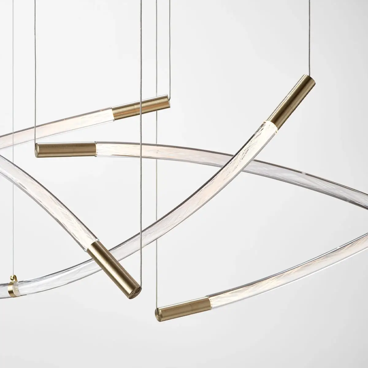 The Flare collection includes crystal glass rods in three shapes, one perfectly straight and two bent in varying degrees. They can be infinitely combined to create custom installations. The light and its construction are very minimalist in appearance. However, they include sophisticated mountings with the latest COB light source.