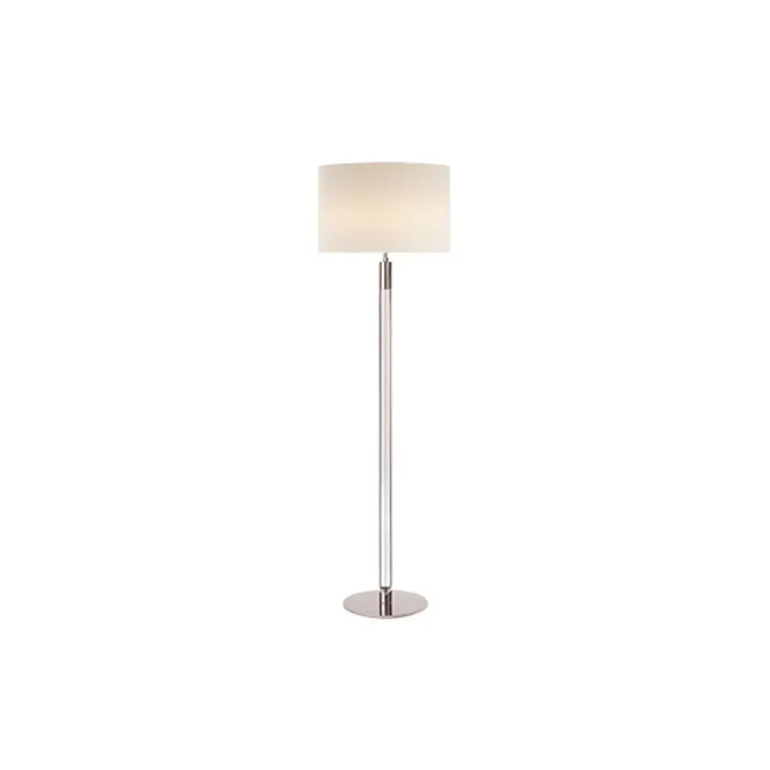 Tall textured column floor lamp with beige shadeTall floor lamp with textured base and beige shade