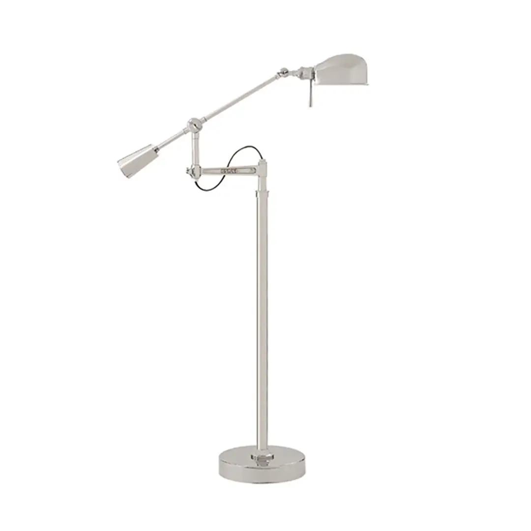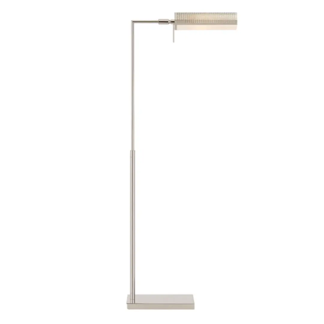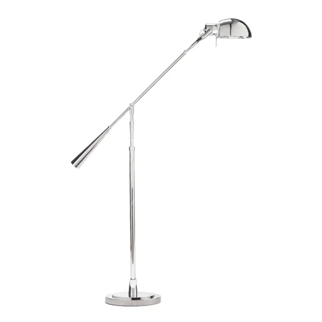 Silver adjustable floor lamp on white backgroundClose-up of shiny chrome towel rail joint