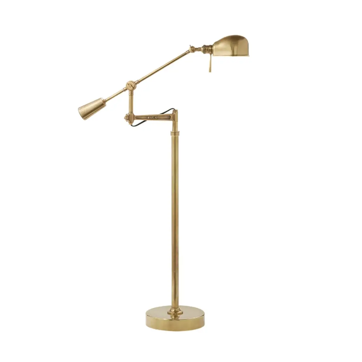 Adjustable brass floor lamp on white backgroundGolden brass curtain rod end close-up