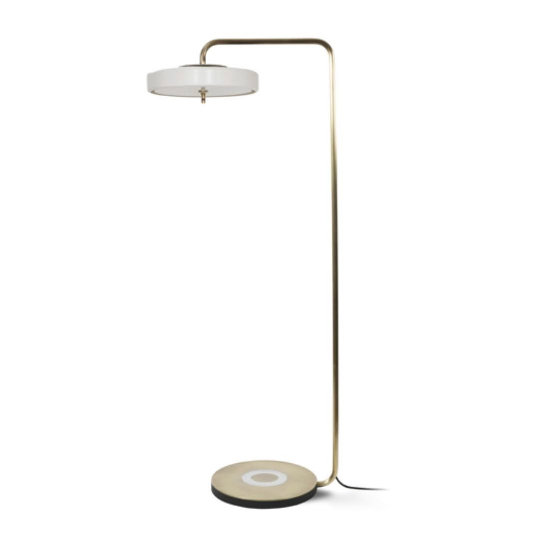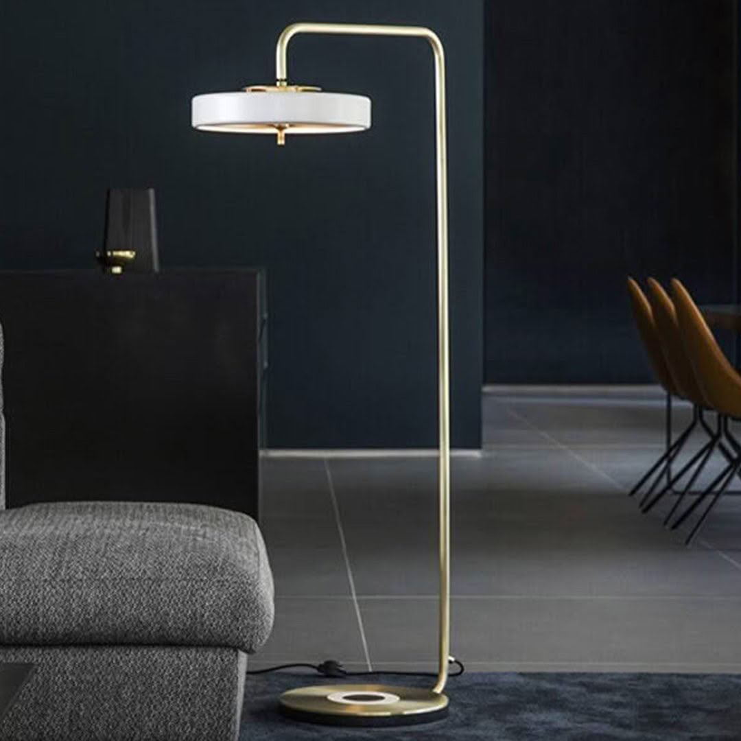 Modern gold floor lamp with oval shadeElegant gold floor lamp with white shade