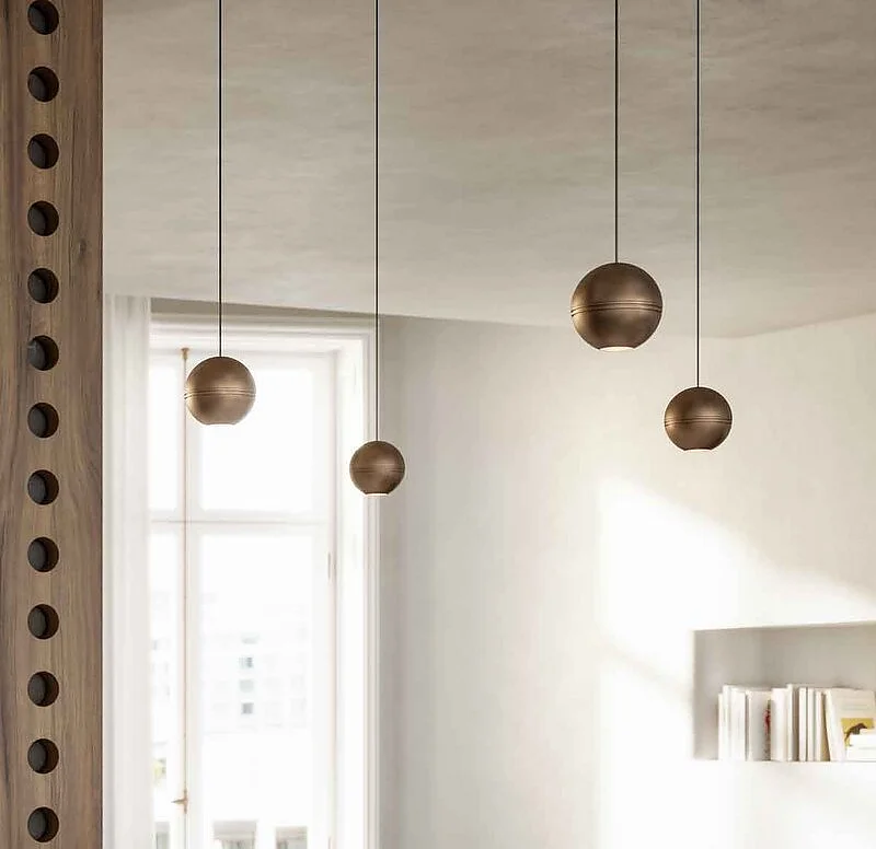 The cluster collection boasts refined and sophisticated design. Its name recalls the two circular engravings that embellish its spherical structure finished in Morocco, adding a distinctive and elegant touch. The three different cable lengths available, combined with the various types of ceiling canopies and accessories, make it a versatile collection suitable for creating unique and evocative lighting compositions.