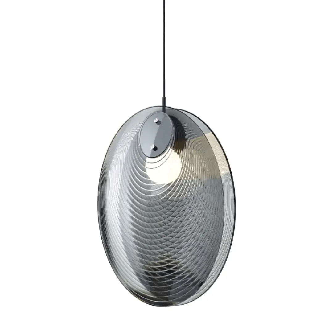 Minimalist vertical pendant light with circular shadeModern ceiling pendant light in interior setting