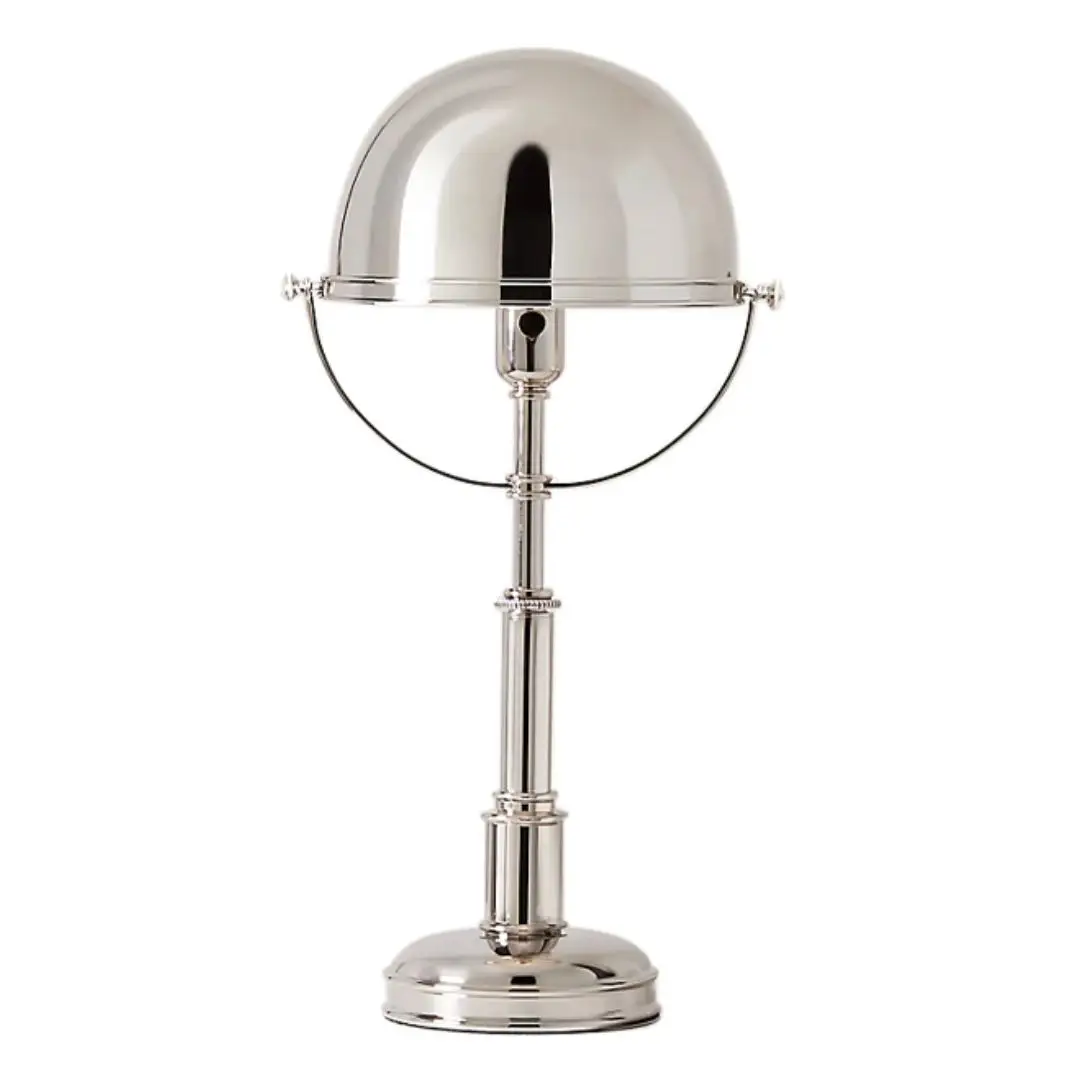 Modern black and gold desk lampModern desk lamp on a round table in cozy room